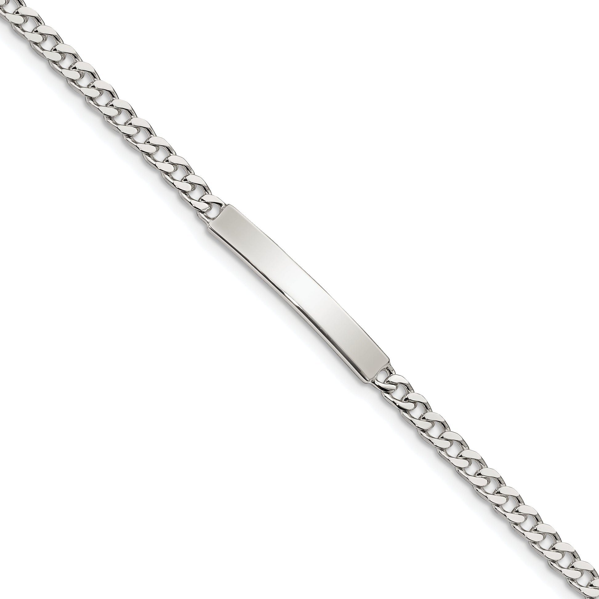 This 7 Inch Sterling Silver Polished Engraveable Curb Link ID Bracelet is a timeless piece of fine jewelry. Crafted from 925 sterling silver, this bracelet combines elegance and durability. Its polished curb link chain measures 7 inches in length and 4 mm in width, offering a classic and sophisticated look. The solid chain is secured with a lobster clasp, ensuring it stays put all day. This bracelet is engravable, allowing you to add a personal touch to your style. Perfect for adding a unique flair, the silky shine of this 7 Inch Sterling Silver Polished Engraveable Curb Link ID Bracelet is sure to capture attention.