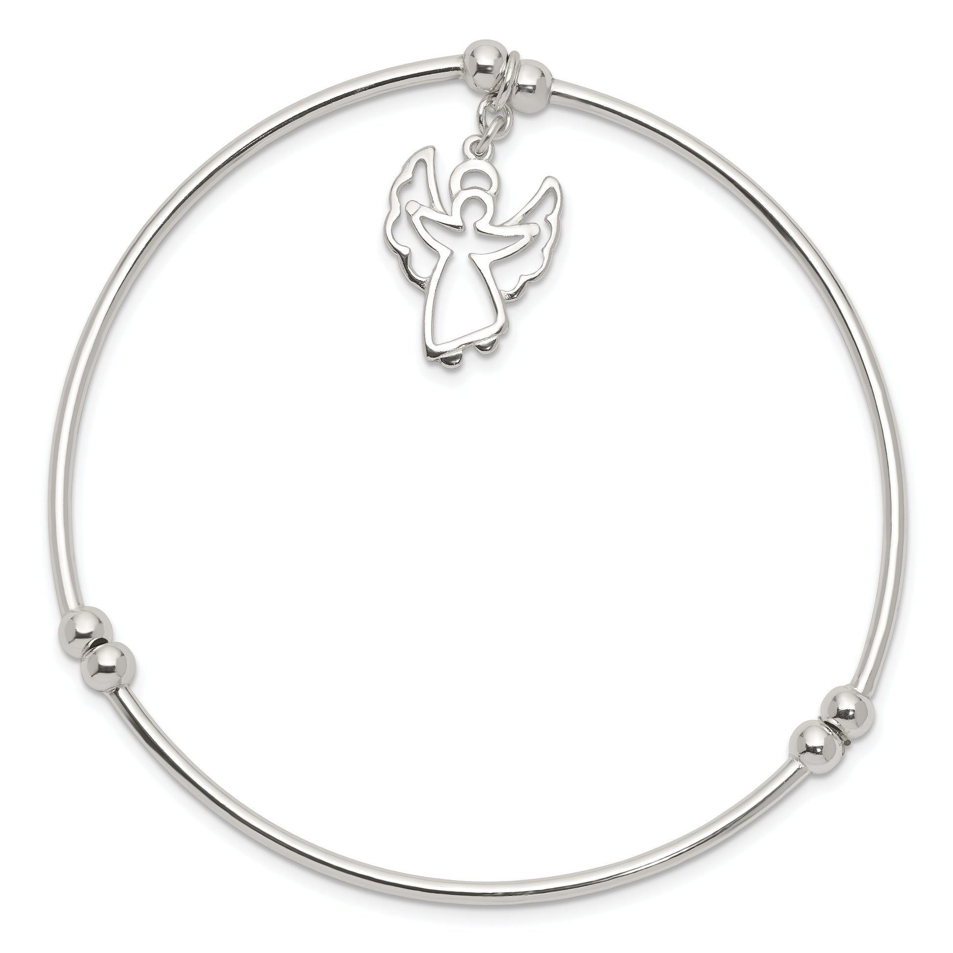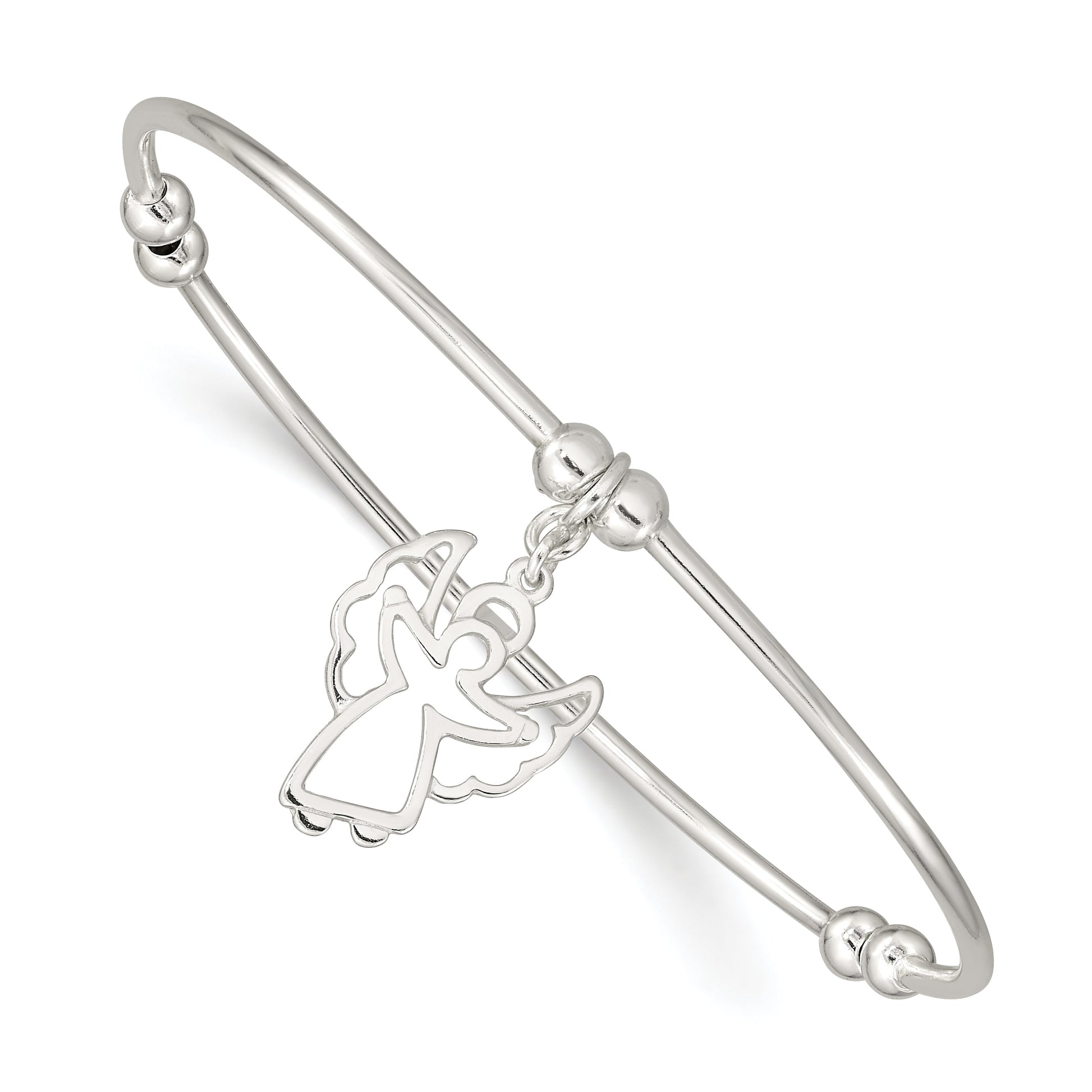 Elevate your jewelry collection with the 7-Inch Sterling Silver Rhodium-Plated Bead with Angel Stretch Bangle Bracelet. Crafted from 925 sterling silver, this bracelet gleams with rhodium plating. Its polished finish adds a sleek touch, making it a timeless piece. The bangle design ensures an easy slip-on fit, offering a blend of style and comfort. At 7 inches in length and 2 mm wide, it's lightweight and flexible, perfect for any occasion. With its angel theme, this stretch bangle is a charming addition to any outfit. Get glowing with this 7-Inch Sterling Silver Rhodium-Plated Bead with Angel Stretch Bangle Bracelet.