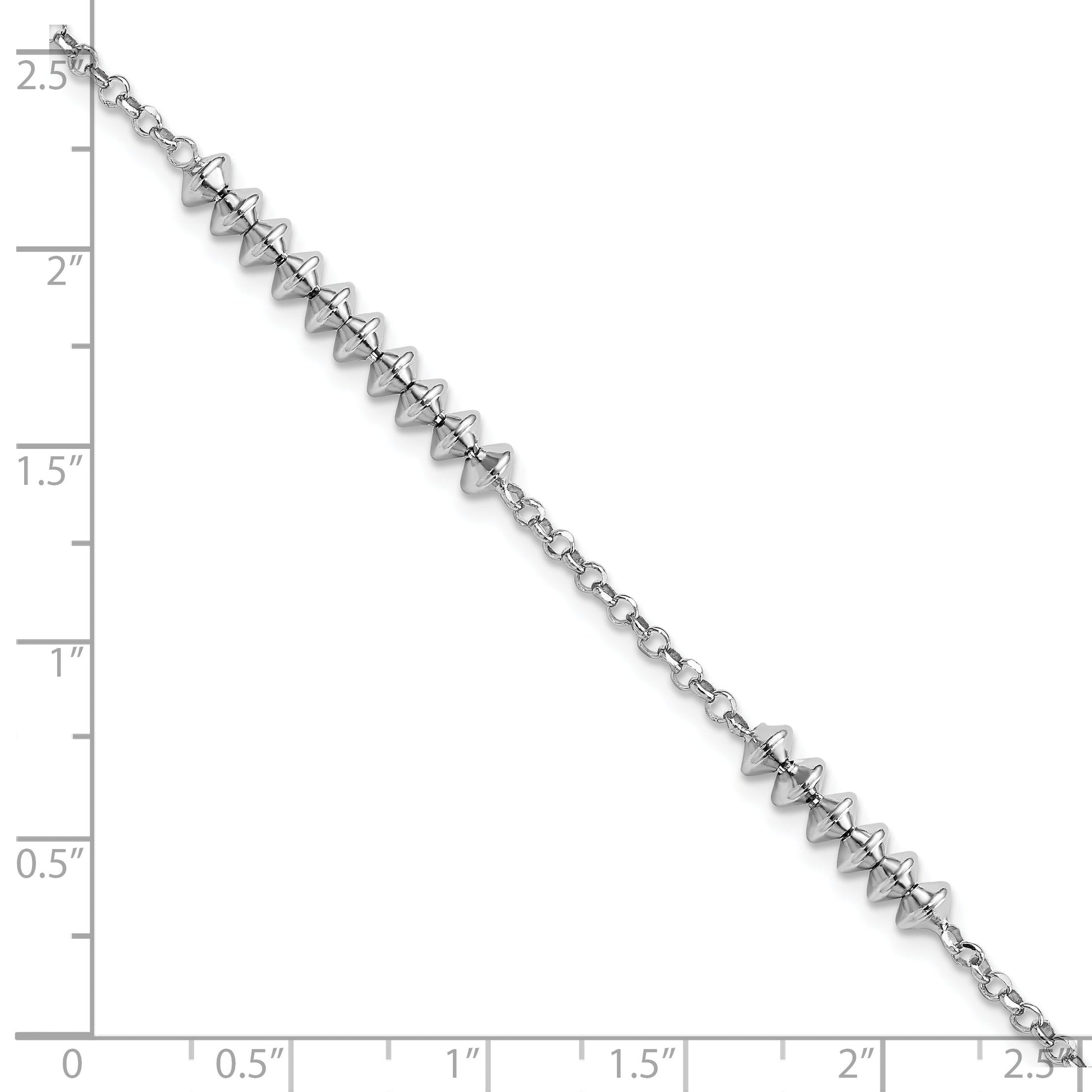 Introducing the elegant 7 Inch Sterling Silver Rhodium-Plated Bracelet, perfect for adding a touch of class to your style. Crafted from sterling silver with rhodium plating, this bracelet gleams with a polished finish. The bracelet, detailed with beaded texture, measures 7 inches in length and comes with a 1-inch extender for a comfortable fit. Its width of 4.05 mm adds subtle sophistication while the fancy lobster clasp ensures secure wear. Ideal for women seeking understated glam, the 7 Inch Sterling Silver Rhodium-Plated Bracelet is both versatile and stylish, making it a must-have accessory.