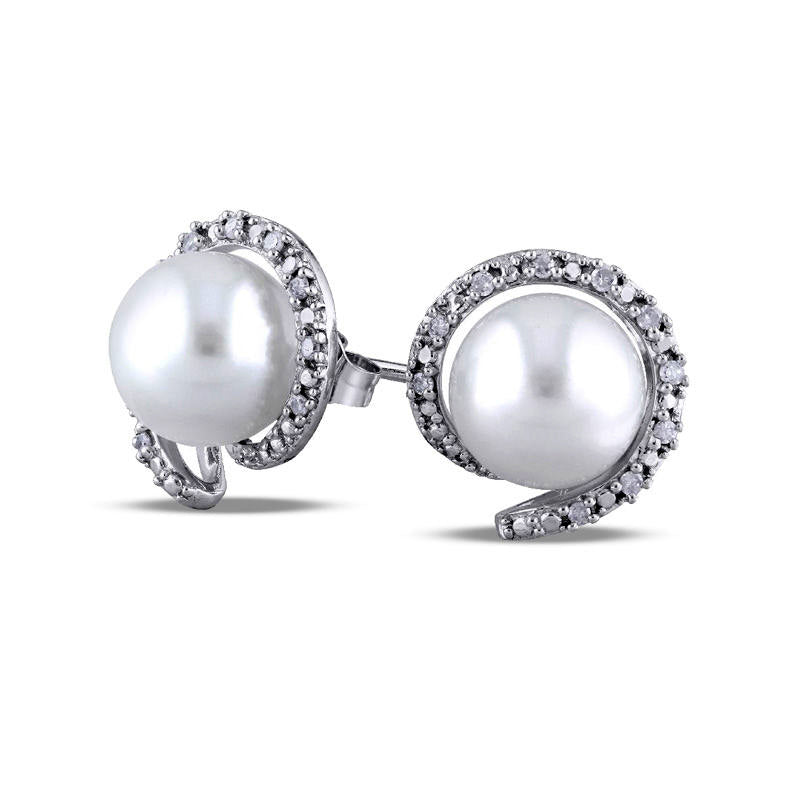 8.0 - 8.5mm Cultured Freshwater Pearl and 0.1 CT. T.W. Diamond Frame Stud Earrings in 10K White Gold