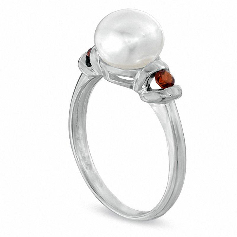 8.0 - 8.5mm Cultured Freshwater Pearl and Garnet Ring in Sterling Silver
