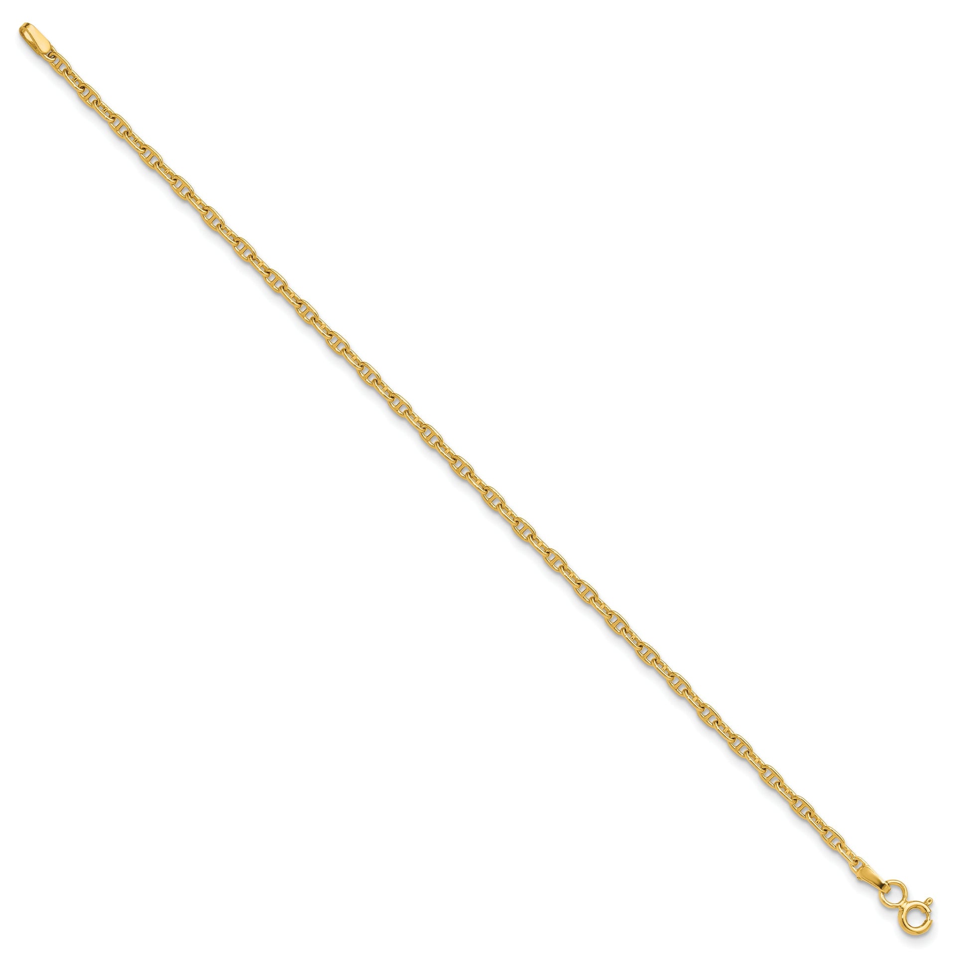 Discover the elegance of the 8.00 Inch 14K 2.35mm Mariners Link Chain. Crafted from pure 14K yellow gold, this chain offers an ideal length of 8 inches for a refined wrist fit. The 2.35mm width showcases a classic Mariners link design, lending timeless charm to any look. Its rich yellow color adds a dash of luxury to your ensemble, making it a versatile piece for both everyday wear and special occasions. Elevate your jewelry game with the exquisite 8.00 Inch 14K 2.35mm Mariners Link Chain.