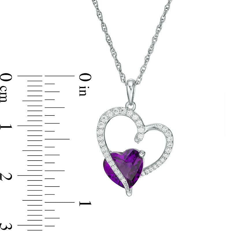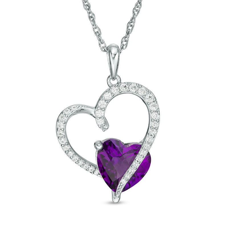 8.0mm Amethyst and Lab-Created White Sapphire Tilted Heart Pendant in Sterling Silver