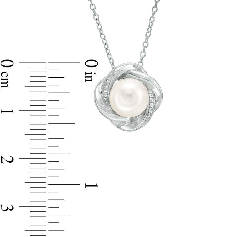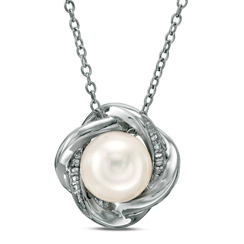 8.0mm Cultured Freshwater Pearl and Lab-Created White Sapphire Love Knot Pendant in Sterling Silver