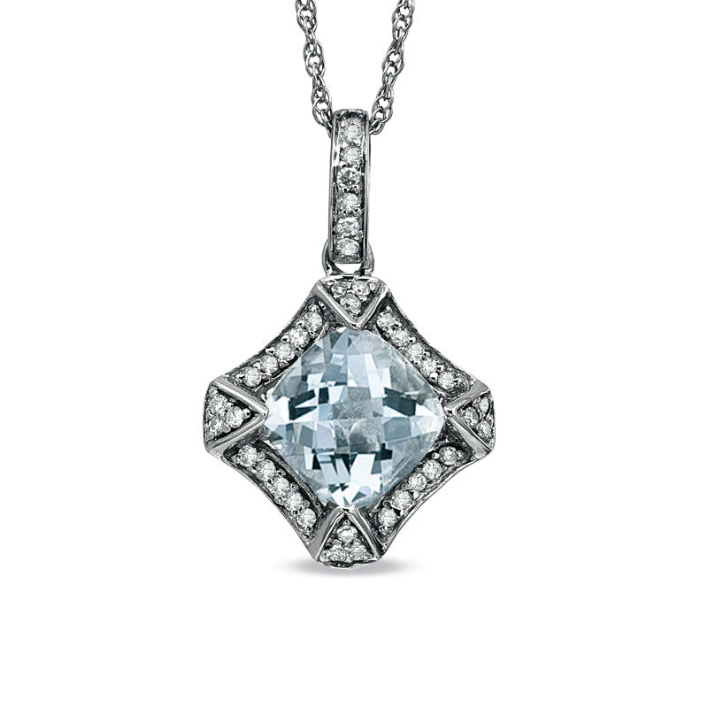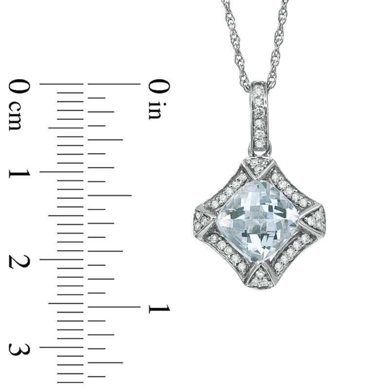 8.0mm Cushion-Cut Aquamarine and 0.2 CT. T.W. Natural Diamond Frame Pendant in Sterling Silver