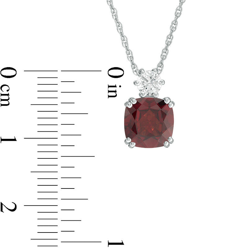 8.0mm Cushion-Cut Garnet and Lab-Created White Sapphire Pendant in Sterling Silver
