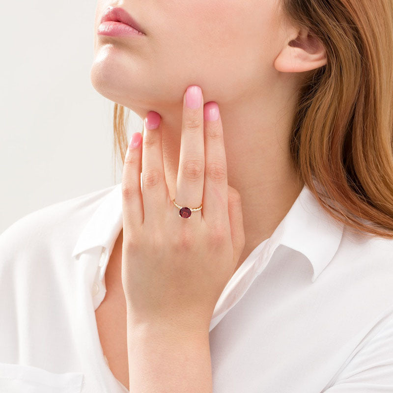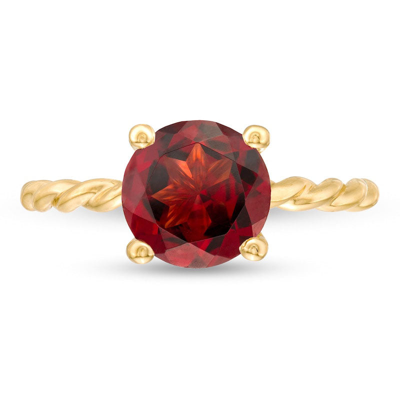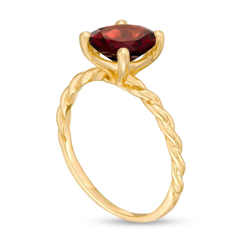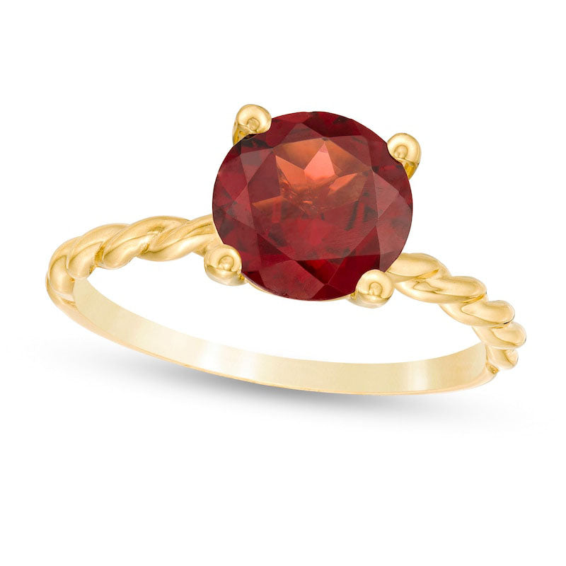 8.0mm Garnet Solitaire Rope Shank Ring in Solid 10K Yellow Gold