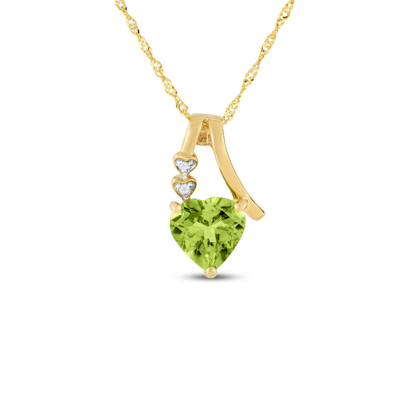 8.0mm Heart-Shaped Peridot and Natural Diamond Accent Pendant in 14K Gold
