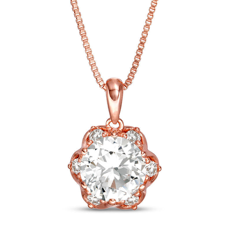 8.0mm Lab-Created White Sapphire Flower Frame Pendant in Sterling Silver with 18K Rose Gold Plate