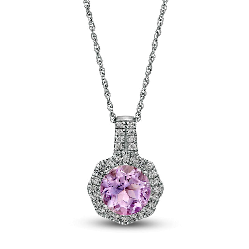 8.0mm Rose de France Amethyst and Lab-Created White Sapphire Octagonal Frame Pendant in Sterling Silver