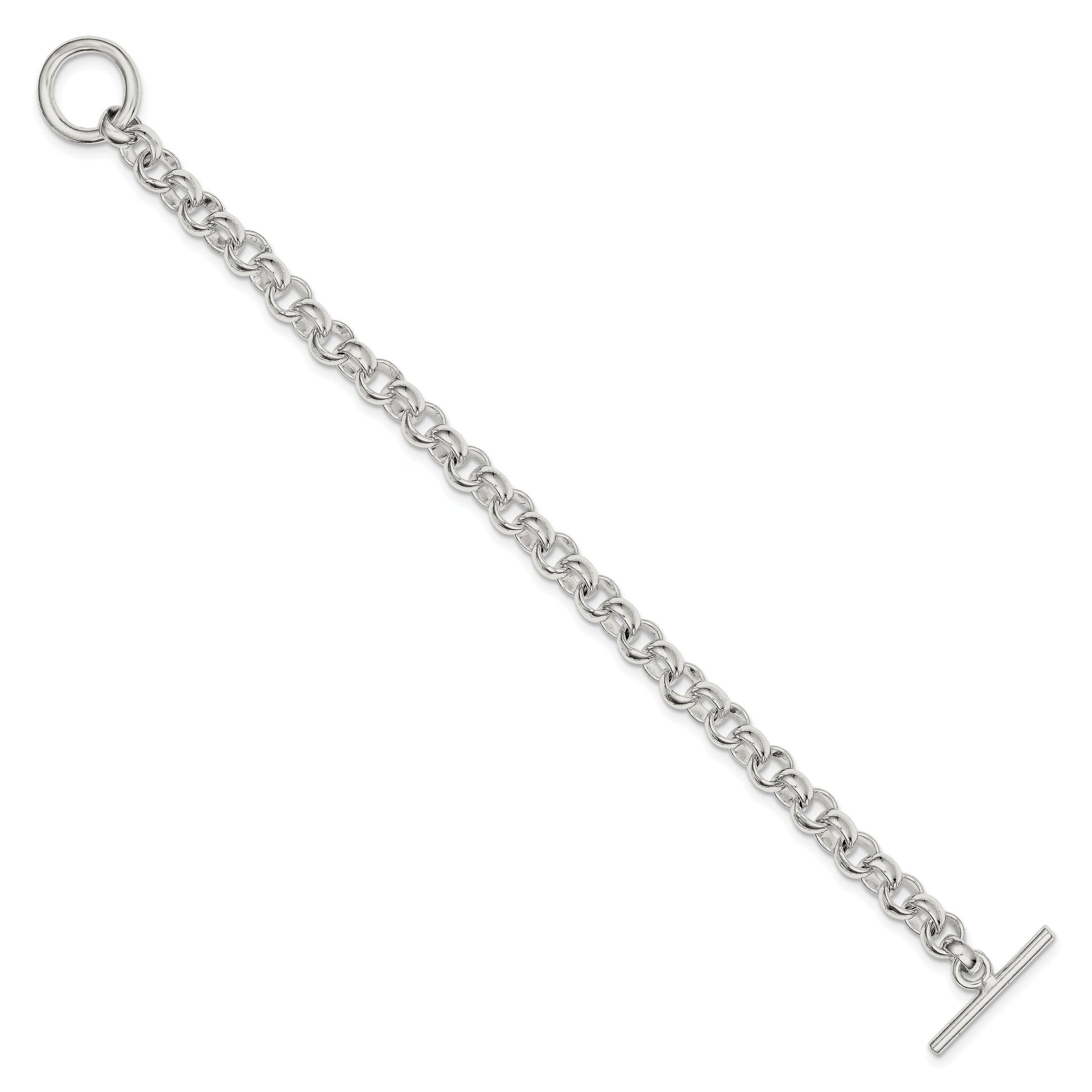 Discover the elegance of our 8.5 Inch Sterling Silver Fancy Link Bracelet. Crafted from polished 925 sterling silver, this piece adds a touch of sophistication to any outfit. With an 8.5-inch length, it sits gracefully on your wrist, while its 8 mm width provides just the right amount of boldness. The handmade craftsmanship ensures unmatched quality, and the toggle clasp makes it easy to wear. The solid and durable design promises a lifetime of style. Wear the 8.5 Inch Sterling Silver Fancy Link Bracelet for a refined yet modern look.