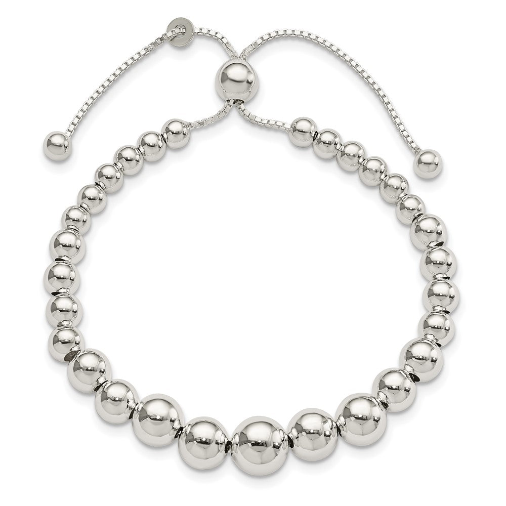 The 8.5 Inch Sterling Silver Graduated Beads Adjustable Bracelet embodies elegance and style in its polished design. Crafted from genuine 925 sterling silver, this piece sparkles with a fresh, polished finish that resists tarnish. The bracelet features a series of graduated beads with a box chain that is just 0.9 mm thick, offering a streamlined yet eye-catching look. With a clever slip-on design, it adjusts to fit comfortably on any wrist. Ideal for women who appreciate the charm of minimalistic jewelry, the 8.5 Inch Sterling Silver Graduated Beads Adjustable Bracelet is a must-have accessory.