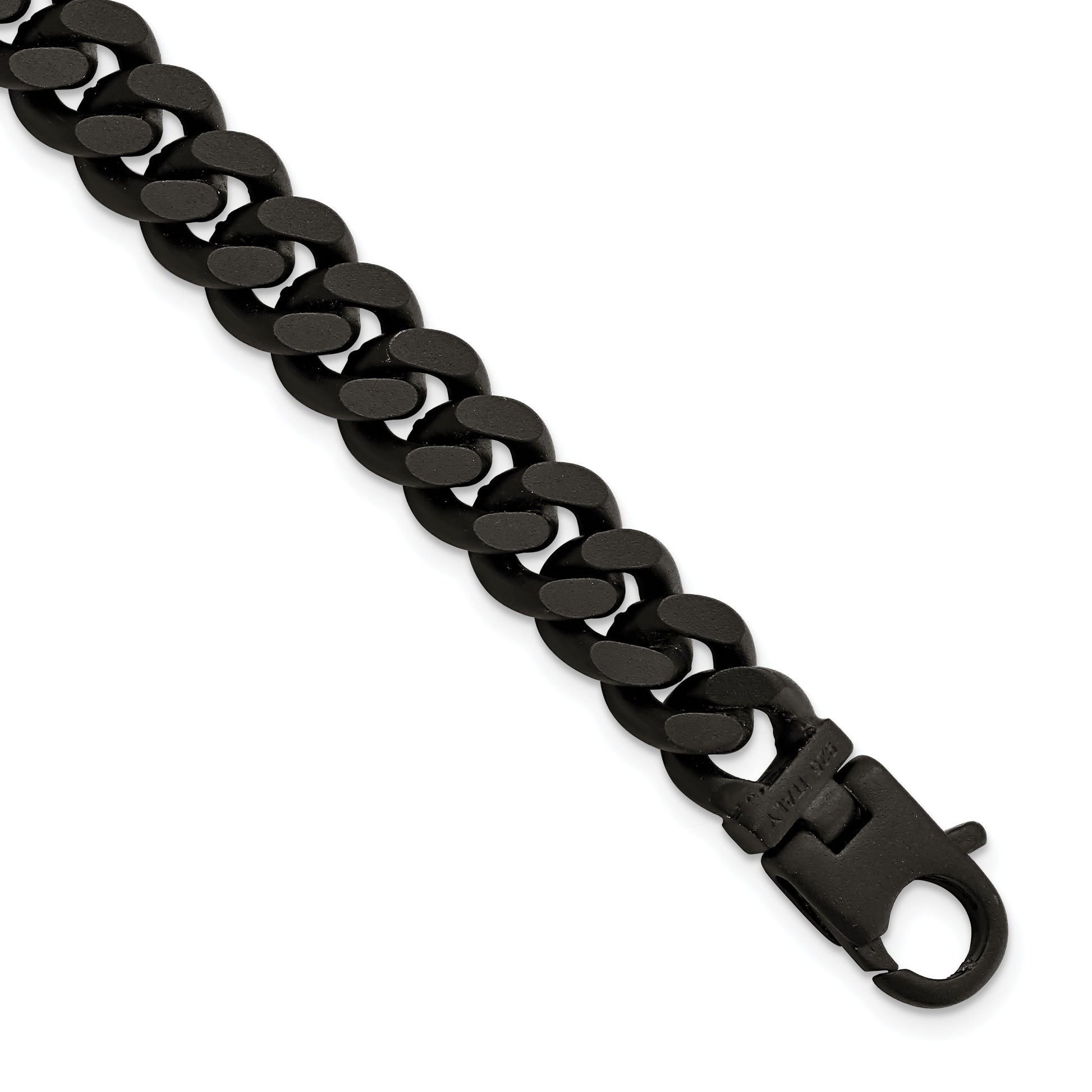 The 8.5 Inch Sterling Silver Men's Matte Finish Black Ruthenium Curb Bracelet is the ultimate piece for men seeking understated luxury. Crafted from genuine 925 sterling silver, this bracelet captivates with its sleek black ruthenium plating. The 8.5-inch curb chain design offers durability while maintaining a classic appeal. The 9.2 mm width adds an assertive touch, making it a standout accessory on any wrist. A reliable lobster clasp ensures secure fastening. This bracelet's balance of boldness and elegance makes it an essential addition to any man's fine jewelry collection.