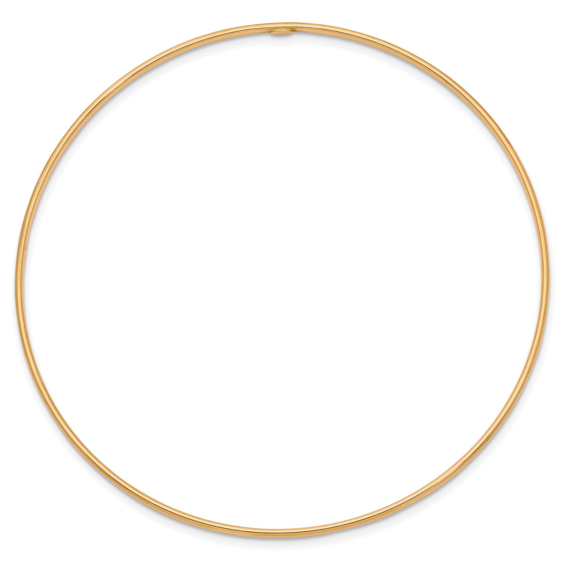 The 8 Inch 14K 1.5mm Polished Slip-On Bangle Bracelet shines with elegance. Crafted from pure 14K yellow gold, this semi-solid jewelry piece offers a flawless polished finish. Measuring 8 inches in length and 1.5 mm in width, it slides on easily without a clasp, making it perfect for any occasion. Its sleek design makes it an essential addition to your collection, highlighting your style with a hint of sophistication. Elevate your look instantly with this 8 Inch 14K 1.5mm Polished Slip-On Bangle Bracelet.