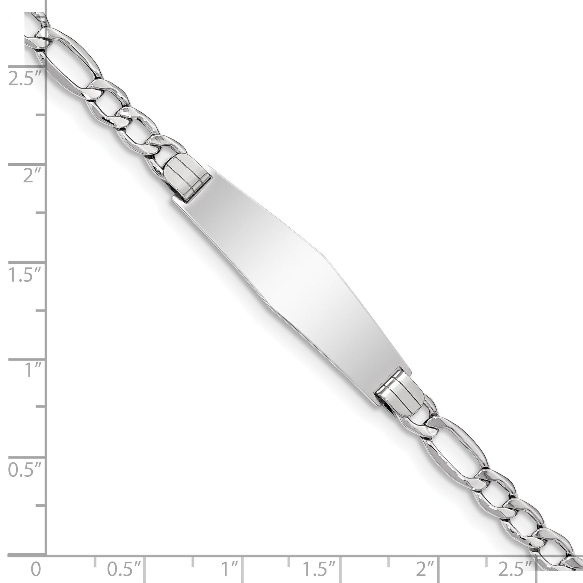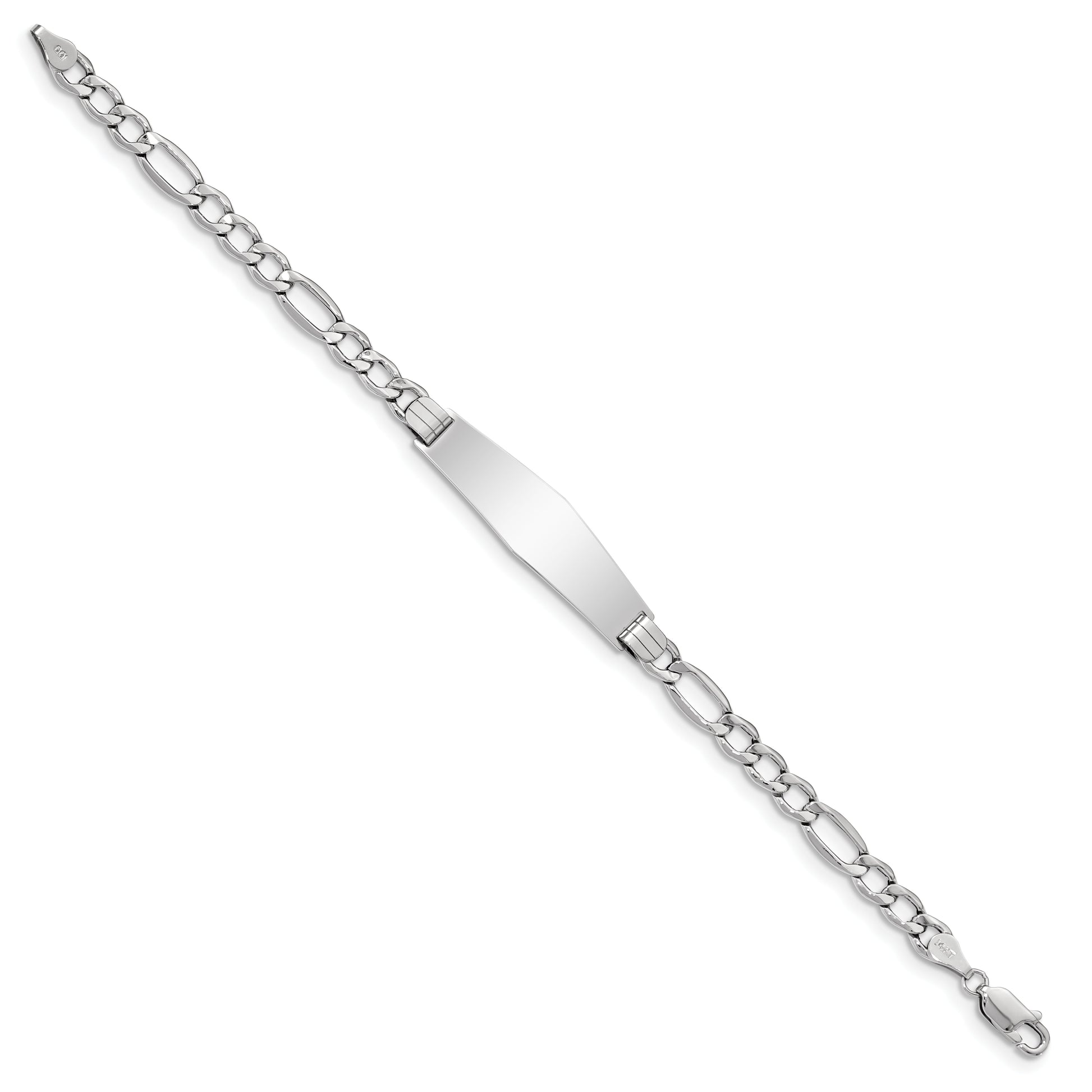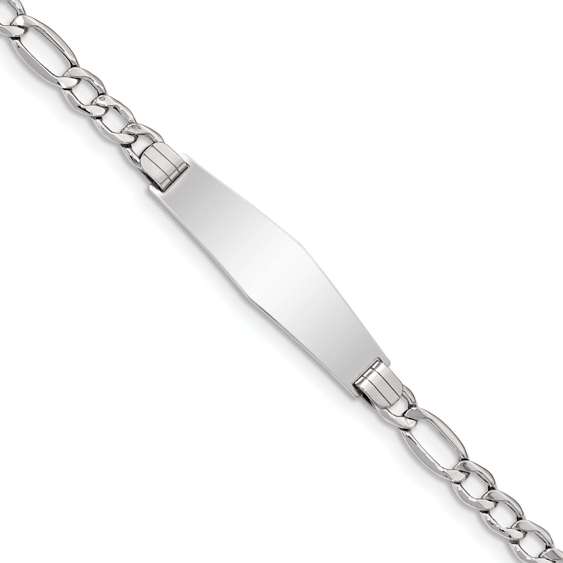 Experience understated elegance with our 8 Inch 14K White Gold Polished Semi-Solid Soft Diamond Shape Figaro ID Bracelet. Crafted from lustrous 14K white gold, this bracelet features a polished finish that highlights its refined design. The Figaro chain, measuring 6 mm in width, offers a timeless look, while the ID plate provides room for personalized engraving. Secure the bracelet with a lobster clasp for a comfortable fit. Perfect for any occasion, the 8 Inch 14K White Gold Polished Semi-Solid Soft Diamond Shape Figaro ID Bracelet is a must-have addition to your collection.