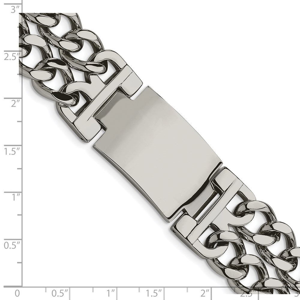 Meet the 8 Inch Stainless Steel Polished ID Bracelet, a perfect blend of rugged style and sleek design for the modern man. This 8-inch accessory flaunts a polished finish that adds a touch of shine to your wrist. Crafted from durable stainless steel, it promises longevity and strength. Its 22 mm width offers a bold look while ensuring comfort. Equipped with a secure fold-over catch clasp, it's easy to wear and stays in place. The bracelet's engravable plate allows for a personal touch, making it much more than just jewelry. Make a statement with the 8 Inch Stainless Steel Polished ID Bracelet today.