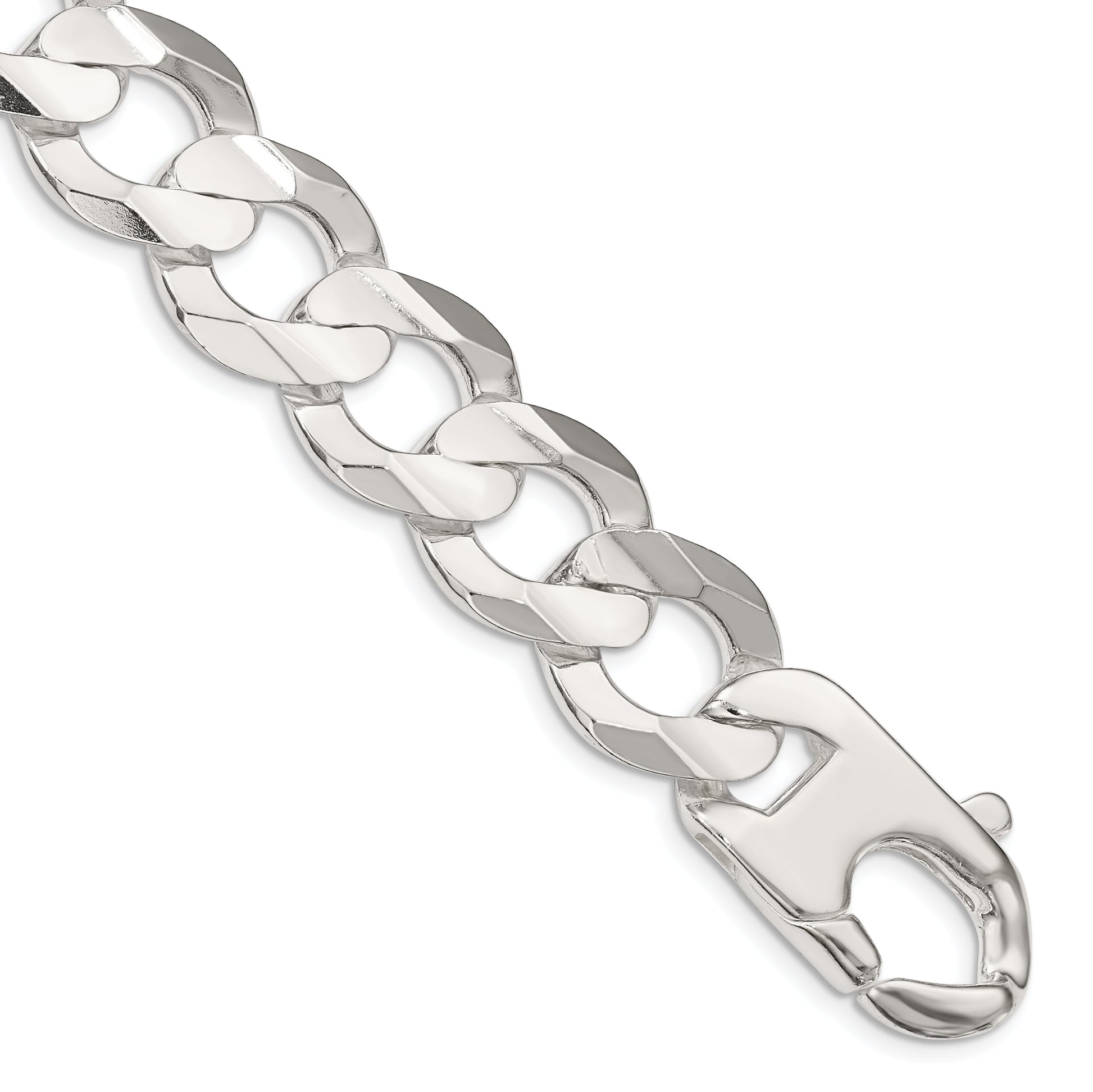 The 8 Inch Sterling Silver 15.75mm Concave Beveled Curb Chain is a striking choice for any man's jewelry collection. With its polished finish and anti-tarnish coating, this bracelet offers both shine and durability. The curb chain, with its 15.75 mm wide links, presents a bold statement, while the concave and beveled design enhances its visual appeal. A secure lobster clasp ensures a comfortable fit. Crafted from 925 sterling silver, this piece is not only elegant but also reliable. Elevate your style with the 8 Inch Sterling Silver 15.75mm Concave Beveled Curb Chain.