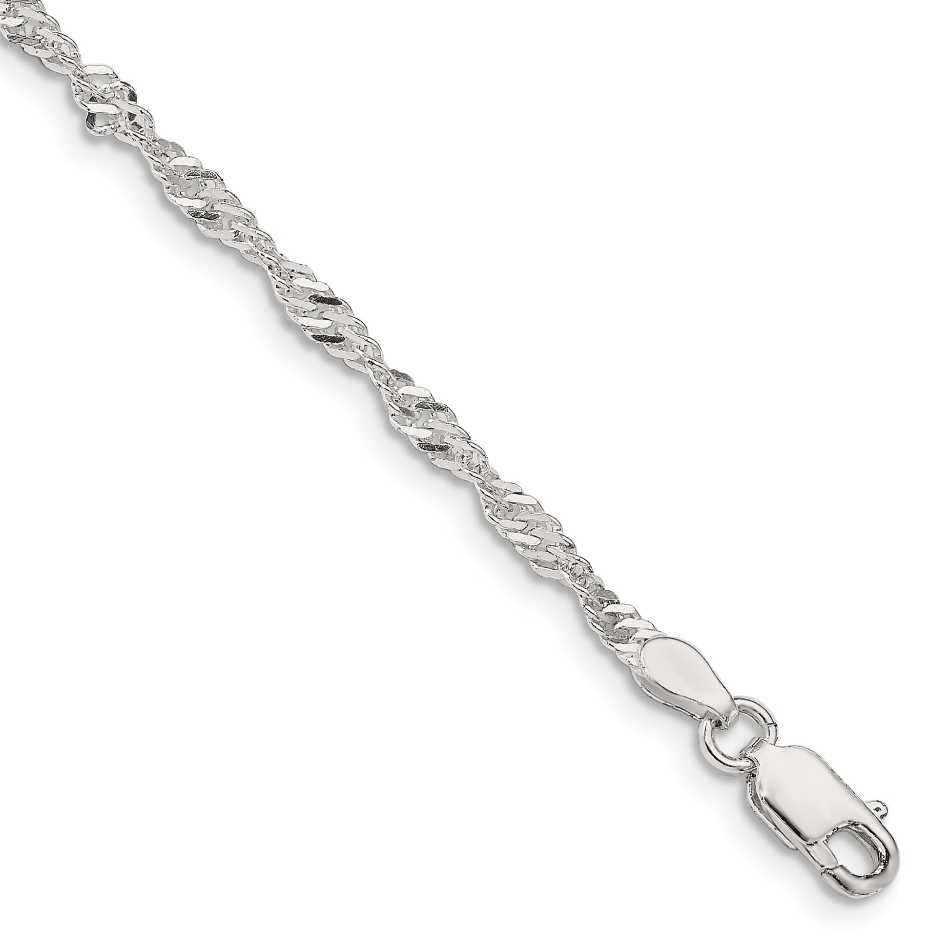 The 8-Inch Sterling Silver Singapore Chain Bracelet is a stunning addition to any jewelry collection. Crafted with 925 sterling silver, this bracelet shines with a polished finish. Its solid construction ensures lasting wear, while the lobster clasp offers secure closure. The Singapore chain design, with its 2.25mm width, gives it an elegant yet robust look. At 8 inches long, this bracelet fits comfortably on most wrists. Ideal for everyday wear or special occasions, the 8-Inch Sterling Silver Singapore Chain Bracelet makes a chic statement.