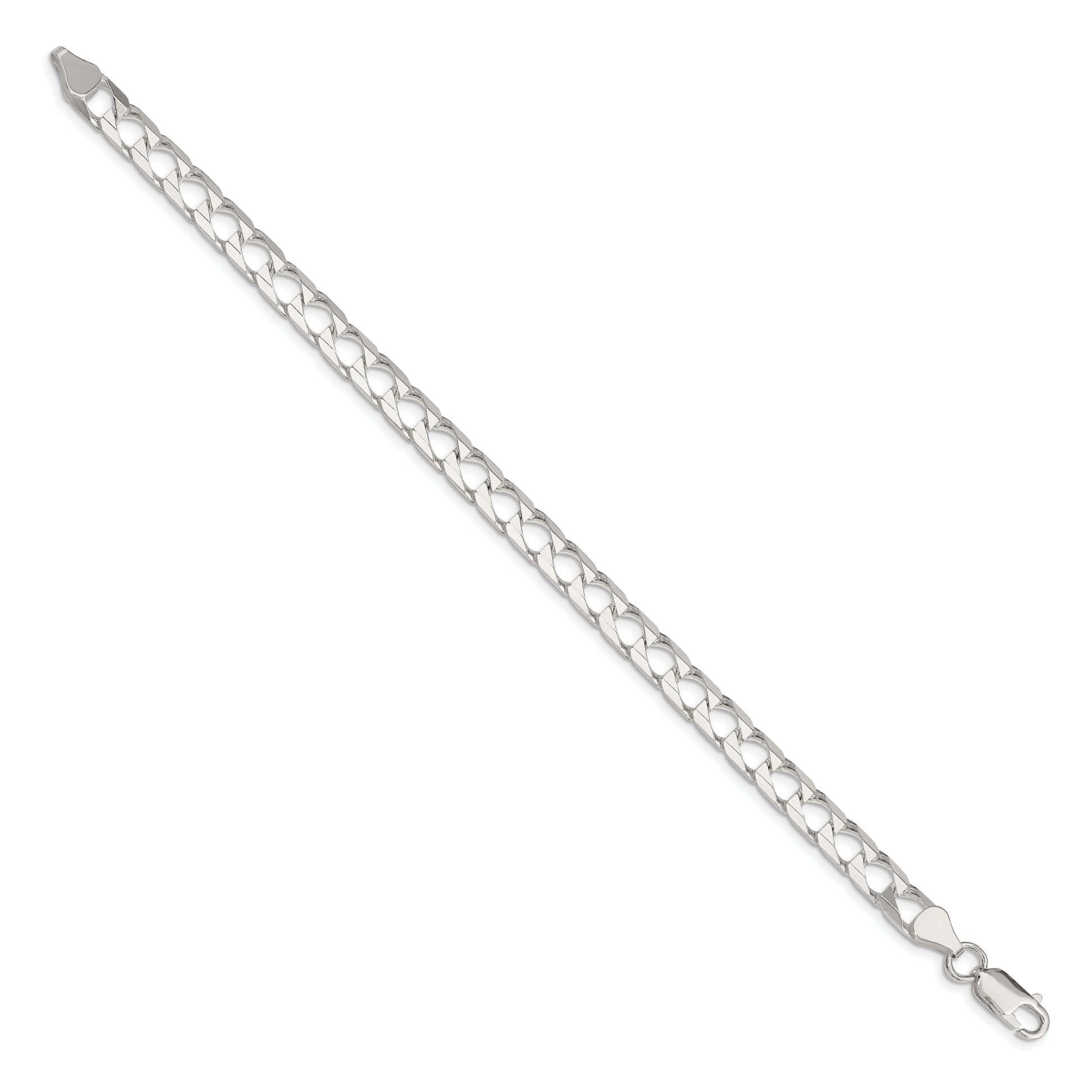 Elevate your style quotient with the 8 Inch Sterling Silver 6.25mm D/C Square Curb Chain. This bracelet, crafted from lustrous 925 sterling silver, boasts a polished finish and an anti-tarnish coating, ensuring its shine lasts. Its solid, cast design showcases strength, while the flat profile of the 6.25 mm wide curb chain adds sleek elegance to your wrist. A sturdy lobster clasp provides security, while its user-friendly design makes it easy to wear. The 8-inch length makes it perfect for the modern man. Add the Sterling Silver 6.25mm D/C Square Curb Chain to your collection for sophistication with every glance.