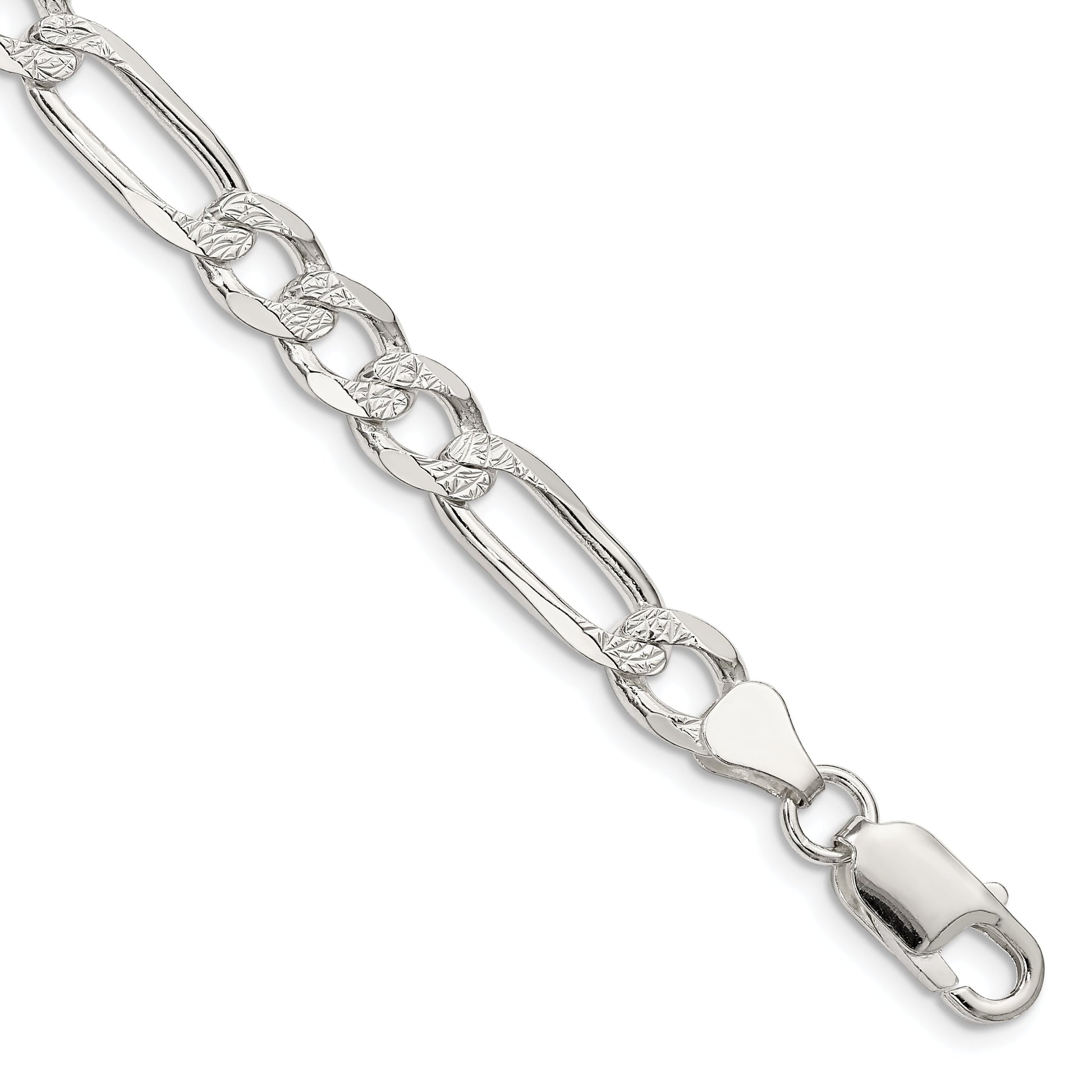 The 8 Inch Sterling Silver 6.75mm Pavé Flat Figaro Chain combines elegance with versatility. Crafted from 925 sterling silver, this bracelet shines with a polished finish. The Figaro chain style, with its 7mm width, offers a sleek and timeless appeal. Designed for both men and women, its solid, casted build ensures durability. The lobster clasp secures it with ease. Anti-tarnish coating maintains its brilliant white sheen, keeping it looking fresh. This Figaro bracelet is not just a piece of jewelry; it's a style statement.