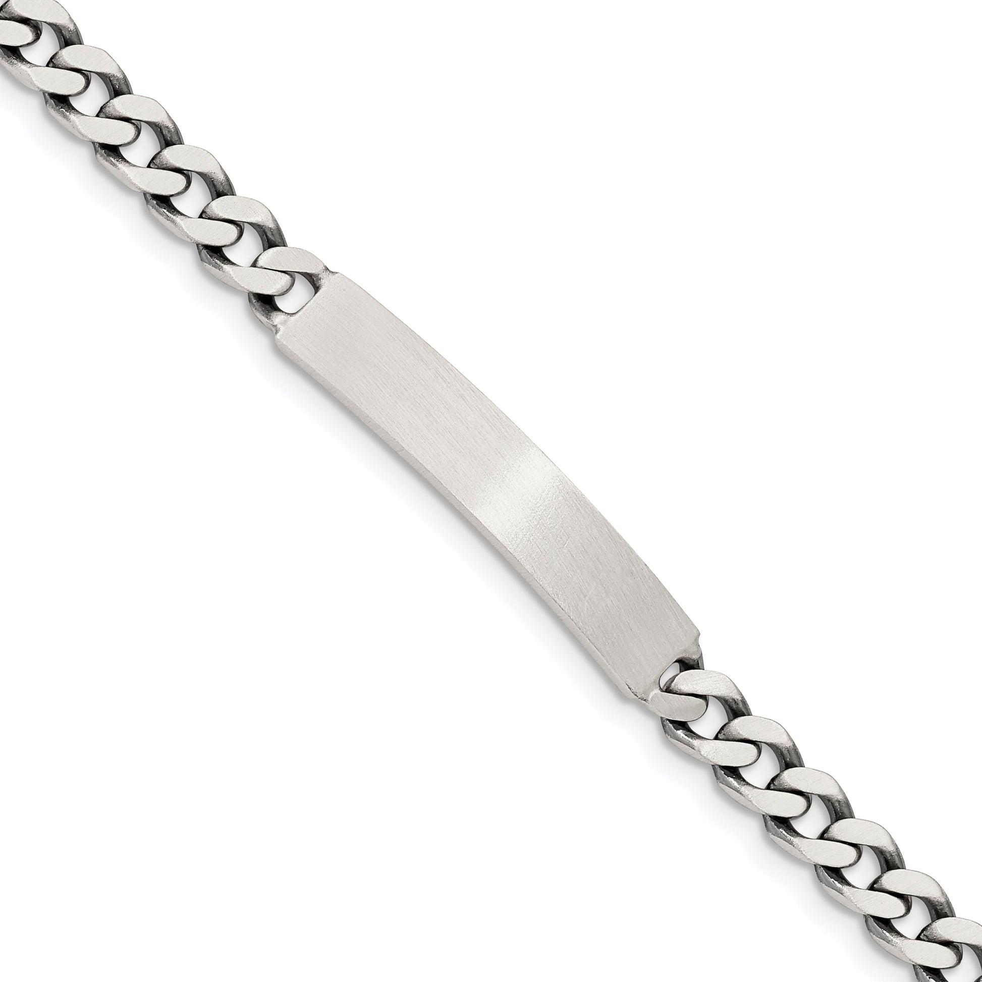 Discover the timeless elegance of the 8-Inch Sterling Silver Engravable Antiqued Curb Link ID Bracelet. Crafted with 925 sterling silver, this sophisticated piece has an antiqued finish that adds a touch of vintage flair. Its solid 8-inch curb chain, measuring 5mm in width, offers both durability and style. The secure lobster clasp ensures daily wear without worry. Personalize this bracelet with an engraving to make it uniquely yours. Ideal for any occasion, this piece of fine jewelry combines style and sentiment beautifully. Shine bright with the 8-Inch Sterling Silver Engravable Antiqued Curb Link ID Bracelet.