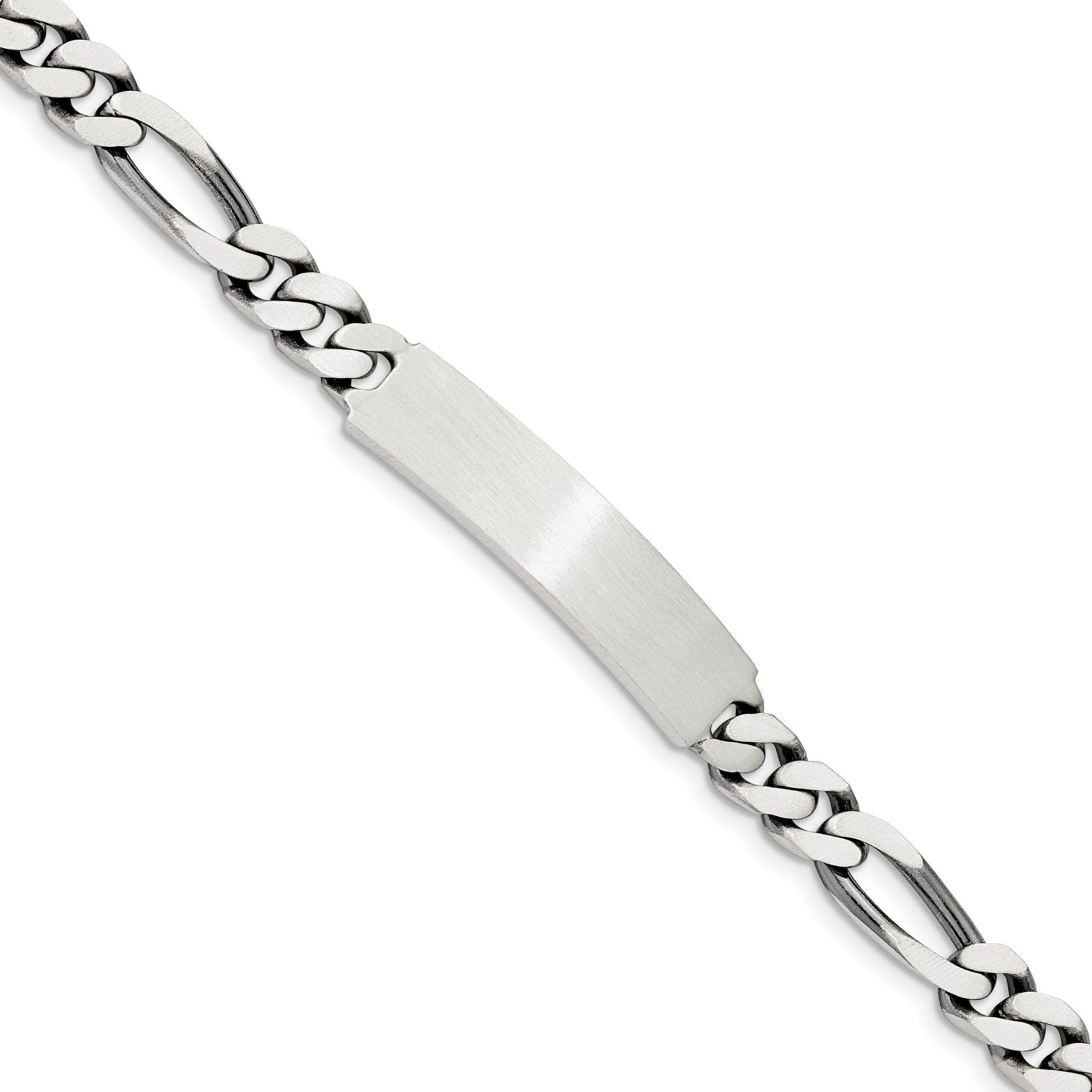 Introducing the 8-Inch Sterling Silver Engraveable Antiqued Figaro Link ID Bracelet, a timeless piece with a blend of elegance and versatility. Made from authentic 925 sterling silver, this bracelet boasts a vintage look with its antiqued finish. At 8 inches long, it sits comfortably on your wrist, secured by a sturdy lobster clasp. The 7 mm Figaro chain is durable yet stylish, making it perfect for any occasion. Best of all, this ID bracelet is engravable, so you can personalize it to add that extra touch. Elevate your jewelry collection with this stunning engravable ID bracelet.