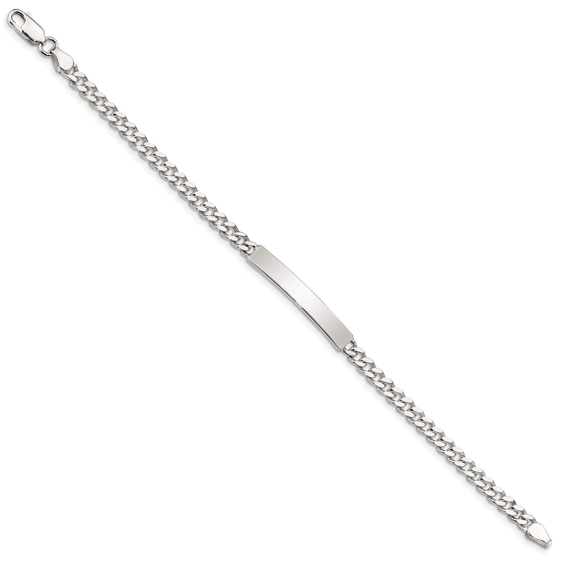 The 8 Inch Sterling Silver Polished Engraveable Curb Link ID Bracelet exudes classic style with a twist. Made from 925 sterling silver, it boasts a bright polished finish that catches the light. The curb link chain is solid and sturdy, offering both durability and fashion. Its 8-inch length and 5mm width fit comfortably on the wrist, secured by a reliable lobster clasp. Perfect for personalization, this bracelet allows engraving, making it ideal for a unique touch. Elevate your accessory game with the 8 Inch Sterling Silver Engraveable ID Bracelet.