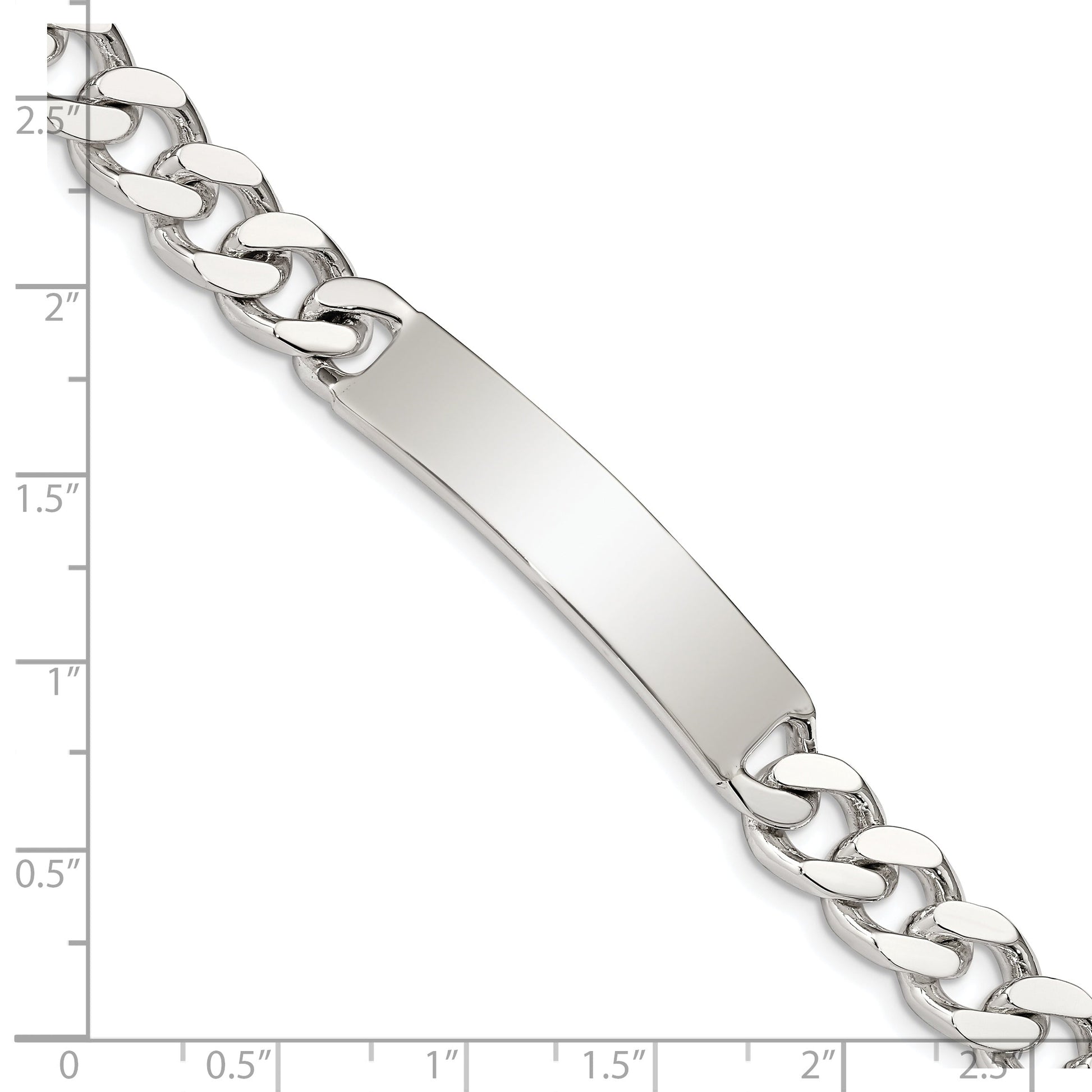 The 8-Inch Sterling Silver Polished Engravable Curb Link ID Bracelet is a striking addition to any collection. Crafted from 925 sterling silver, this bracelet boasts a polished finish and a solid curb link design. Its 9 mm width gives it a bold yet elegant appearance, making it a standout piece. A lobster clasp ensures a secure fit. This 8-inch bracelet not only offers style but also customization, as it is engravable, allowing a personal touch. Wear the 8-Inch Sterling Silver Polished Engravable Curb Link ID Bracelet for both its beauty and personalization.