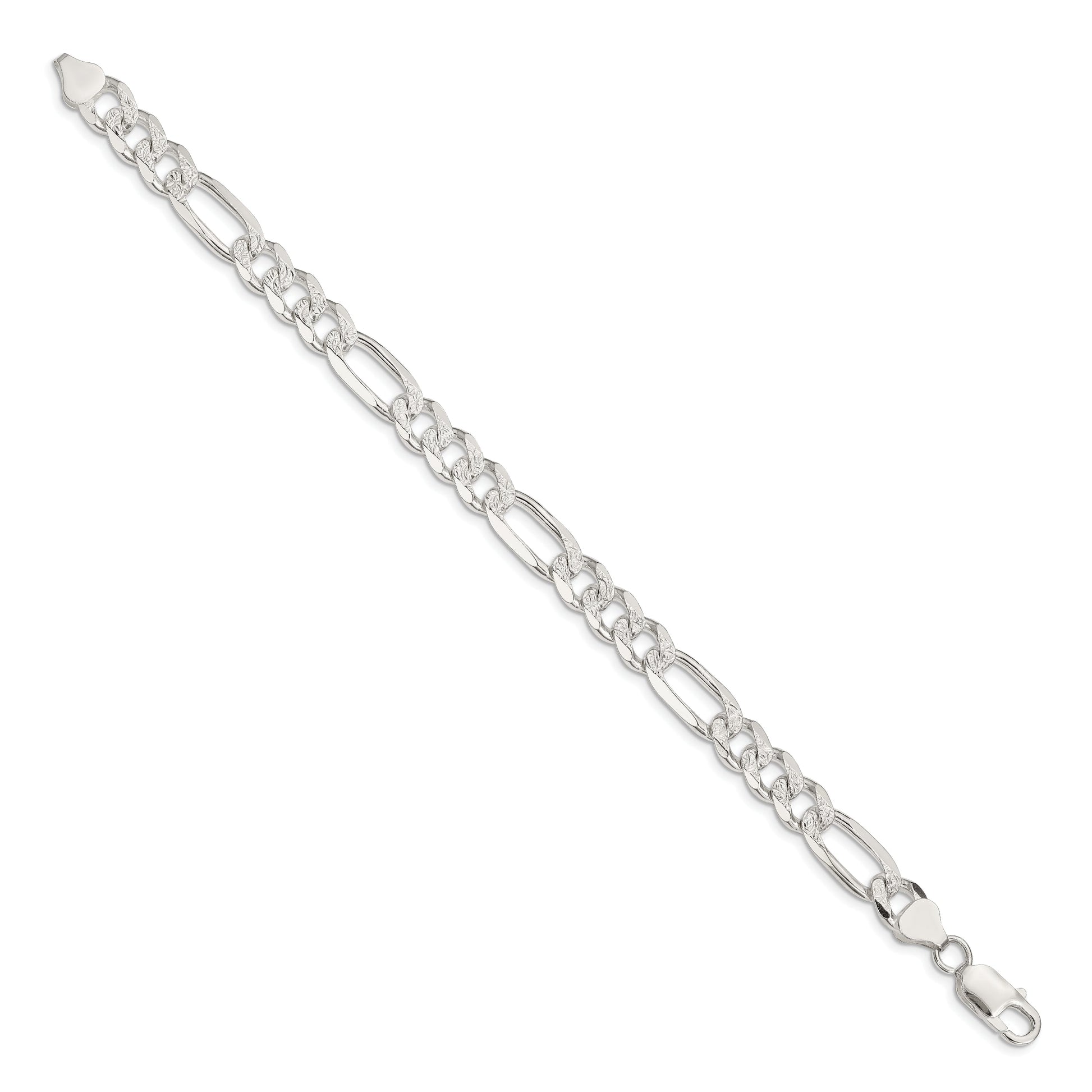 Introducing the 8 Inch Sterling Silver 8mm Pavé Flat Figaro Chain Bracelet, a timeless piece for every man. This bracelet, crafted from 925 sterling silver, shines with a polished finish. Its 8-inch length provides a comfortable fit, and the Figaro chain style adds a classic touch. At 8mm wide, it offers a bold yet elegant statement. The lobster clasp ensures secure wear, while an anti-tarnish coating keeps it looking fresh. This solid, casted bracelet is designed in a sleek flat profile. Own the beauty of the 8 Inch Sterling Silver 8mm Pavé Flat Figaro Chain Bracelet today.