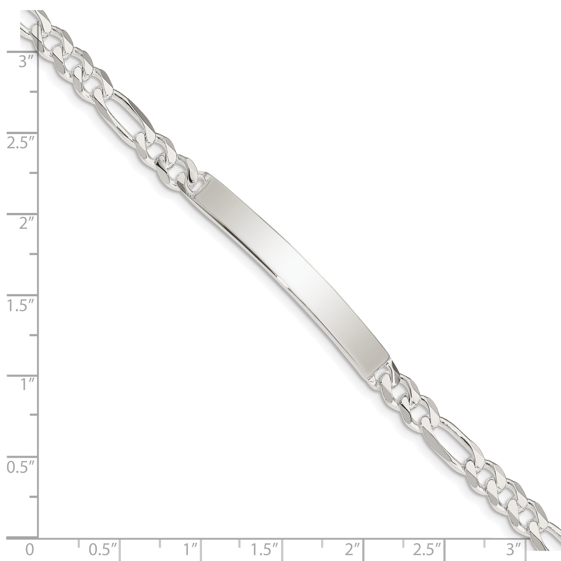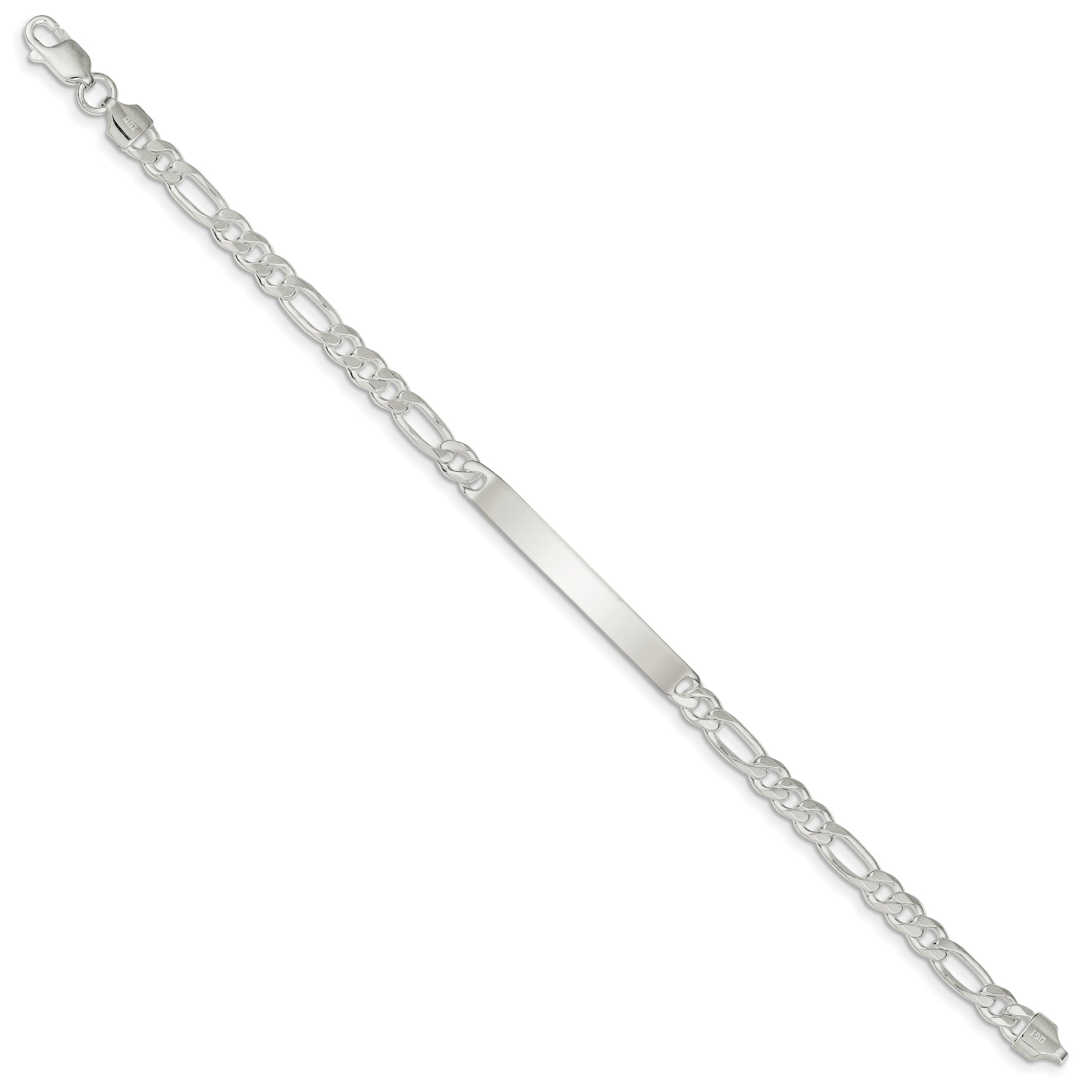The 8 Inch Sterling Silver Figaro Link ID Bracelet showcases elegance with its sterling silver body. Crafted with precision, this polished piece features a classic Figaro chain design, measuring 8 inches in length and 5 mm in width. The bracelet is solid, sturdy, and secured with a reliable lobster clasp, ensuring it stays put. With its sleek surface, it's ready to engrave, offering a personal touch. This unisex bracelet makes the perfect gift for yourself or a loved one. Elevate your accessory collection with the 8 Inch Sterling Silver Figaro Link ID Bracelet, a timeless piece.