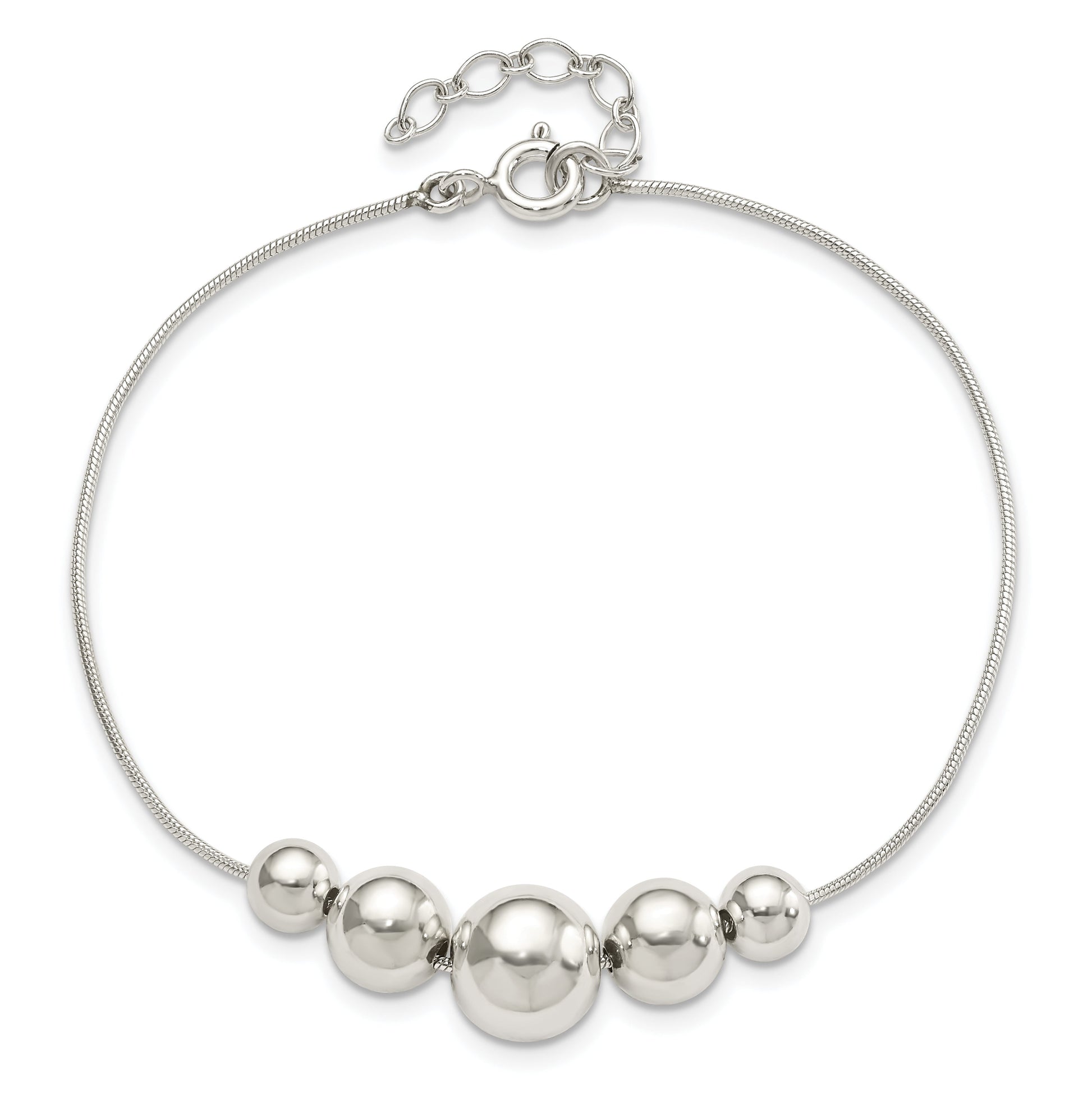 Introducing the exquisite 8 Inch Sterling Silver Polished Tapered Round Bead Bracelet, a true testament to timeless elegance. Crafted from pure 925 sterling silver, this bracelet gleams with a lustrous polished finish. Its snake chain design provides a sleek, modern touch, while measuring 7 inches with an optional 1-inch extender for a customizable fit. The tapered round beads add a unique flair, showcasing 10.05 mm in length and 9.56 mm in width. Secure it with a sturdy spring ring clasp that ensures wearability without compromise. Perfect for any occasion, this sterling silver bracelet enhances any outfit with its refined charm.