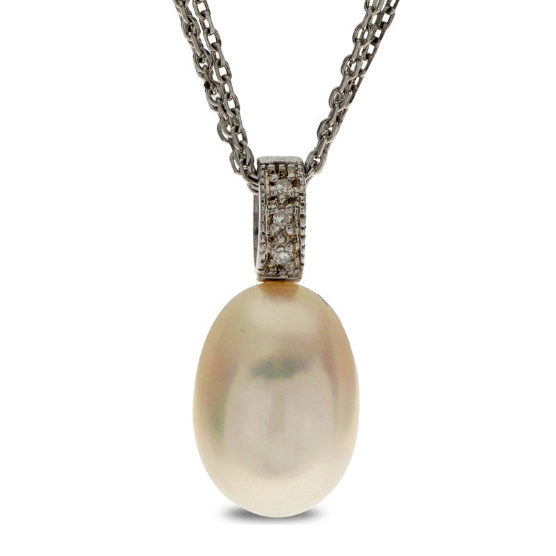 9.0 - 10.0mm Oval Cultured Freshwater Pearl and Natural Diamond Accent Pendant in Sterling Silver