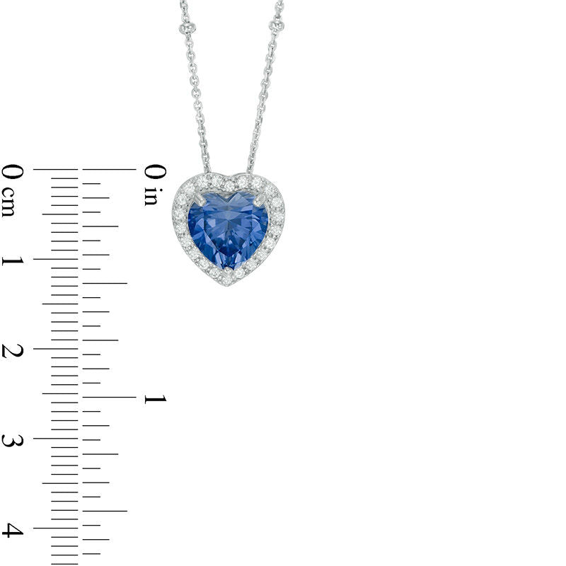 9.0mm Heart-Shaped Lab-Created Blue and White Sapphire Frame Pendant in Sterling Silver