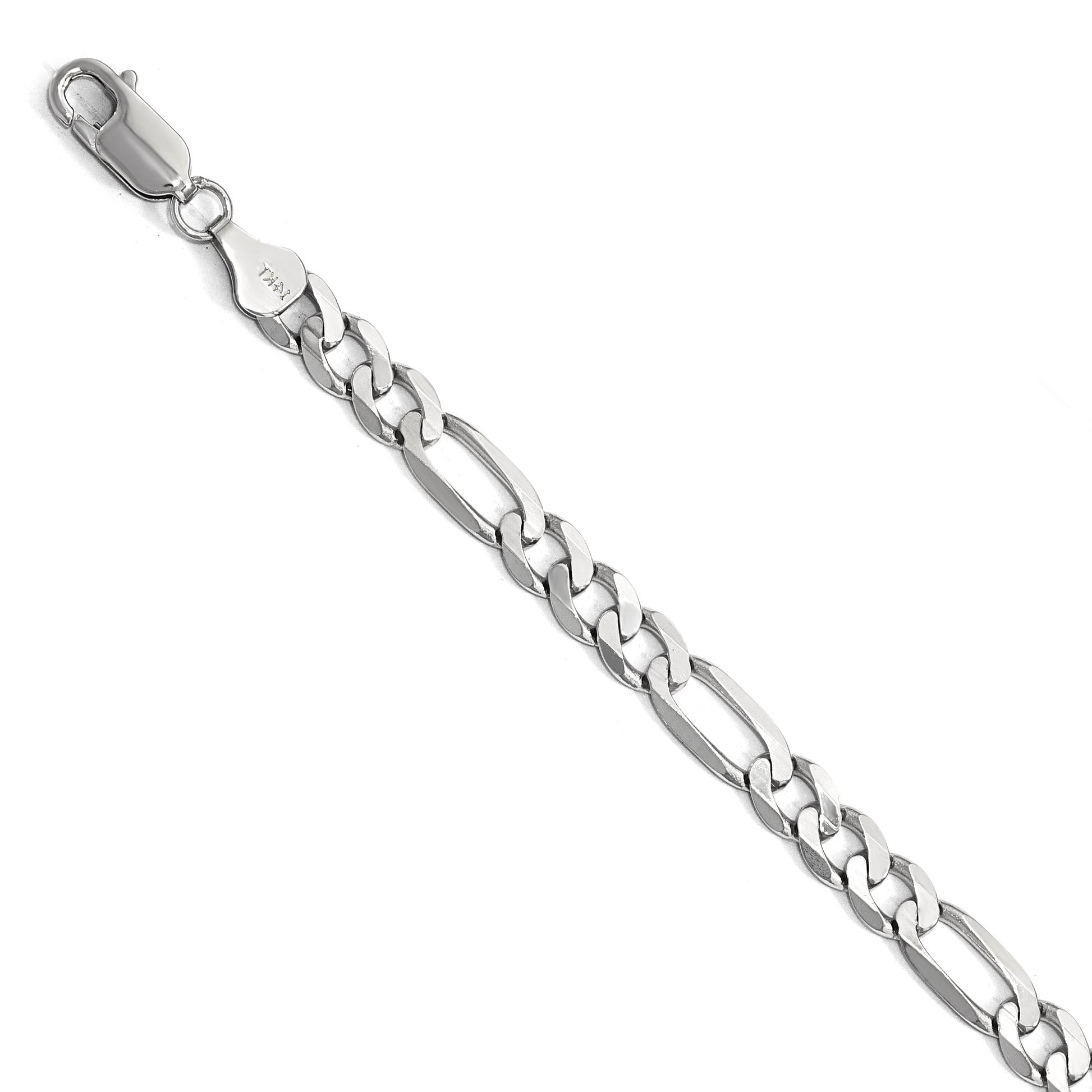 The 9 Inch 14K White Gold 6mm Flat Figaro Chain is a true masterpiece in fine jewelry. Crafted from premium 14K white gold, this polished, rhodium-plated chain offers timeless elegance. The 6mm wide Figaro design combines style and durability, while the lobster clasp ensures a secure fit. Measuring 9 inches, it sits comfortably on your wrist, adding a touch of sophistication to any outfit. With a lifetime warranty, this chain promises lasting beauty and quality. The 9 Inch 14K White Gold 6mm Flat Figaro Chain is perfect for those seeking elegance and durability in a single piece.