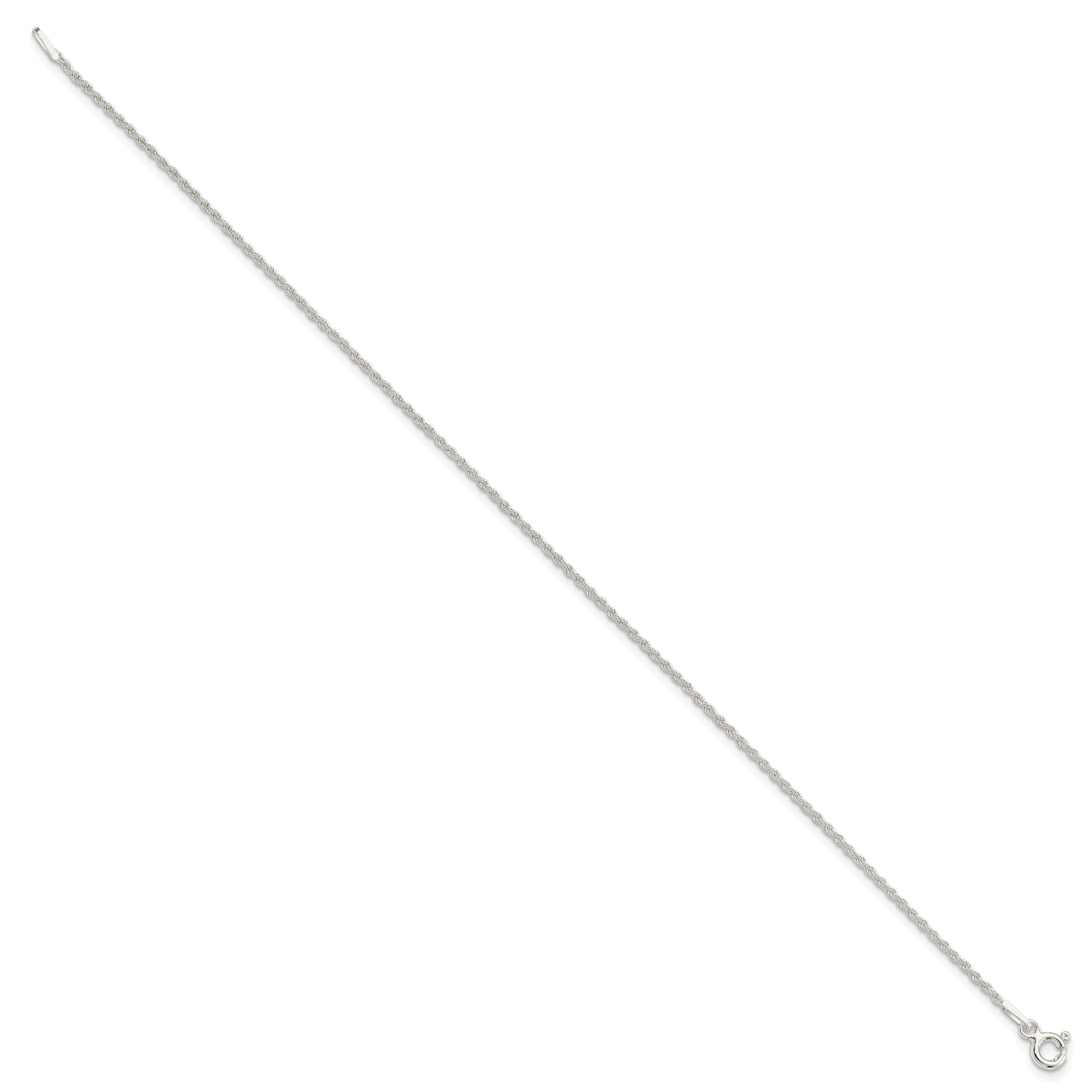 Introducing the delicate 9 Inch Sterling Silver 1.3mm Solid Rope Chain Anklet. Crafted from 925 sterling silver, this anklet gleams with a polished finish that captures the light’s brilliance. Its 9-inch length and 1.3mm width make it a perfect, subtle accessory for any occasion. The sturdy rope chain design ensures lasting quality, while the spring ring clasp promises secure wear. An anti-tarnish coating keeps the anklet looking new. This elegant piece, designed for women, is a stunning blend of simplicity and style. The 9 Inch Sterling Silver 1.3mm Solid Rope Chain Anklet is a timeless addition to your jewelry collection.