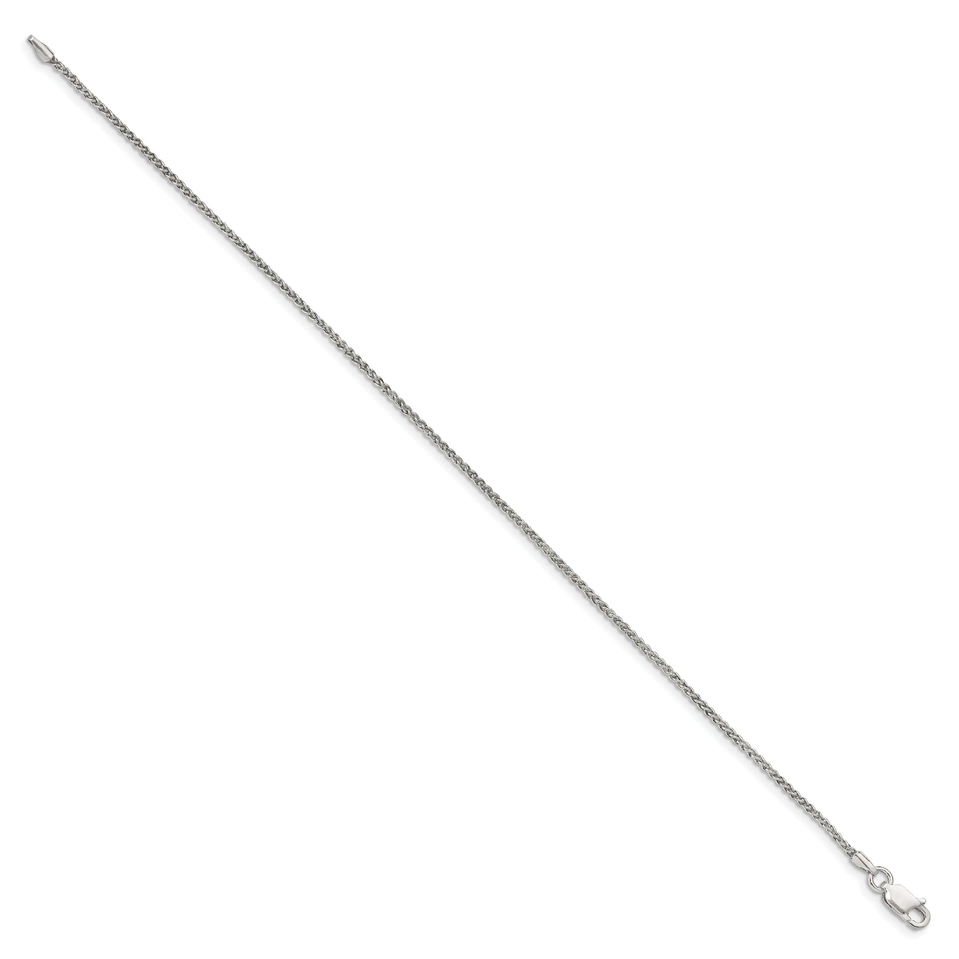 The 9 Inch Sterling Silver 1.5mm Round Spiga Chain Anklet adds a touch of elegance to any outfit, with its sleek and polished design. Crafted from pure sterling silver, this anklet shines with a classic white finish that resists tarnish. The 9-inch chain is expertly made with a Spiga, or wheat pattern, offering a dainty yet durable choice for daily wear. Featuring a secure lobster clasp, it's perfect for women who appreciate both style and substance. Beautify your anklet collection with the timeless appeal of the 9 Inch Sterling Silver 1.5mm Round Spiga Chain Anklet.