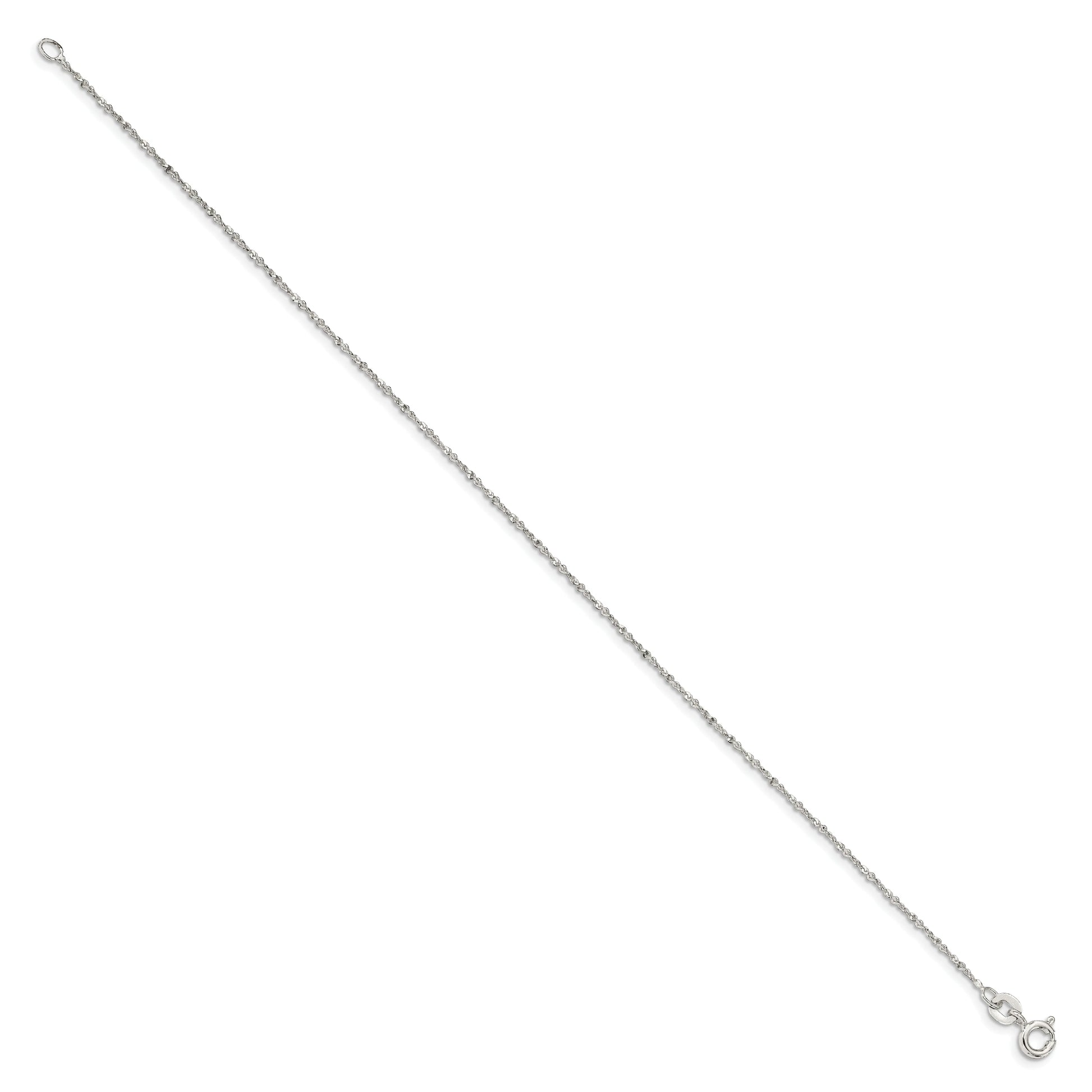 Introducing the 9-Inch Sterling Silver 1mm Twisted Serpentine Chain Anklet. Crafted with 925 sterling silver, this anklet gleams with a polished finish. The serpentine chain design, with its twisted texture, adds an elegant touch to your ankle. At 9 inches in length and with a slender 1mm width, it complements any outfit, from casual to chic. The solid spring ring clasp ensures a secure fit, making it the perfect piece for any occasion. Elevate your jewelry collection with the timeless charm of this 9-Inch Sterling Silver 1mm Twisted Serpentine Chain Anklet.