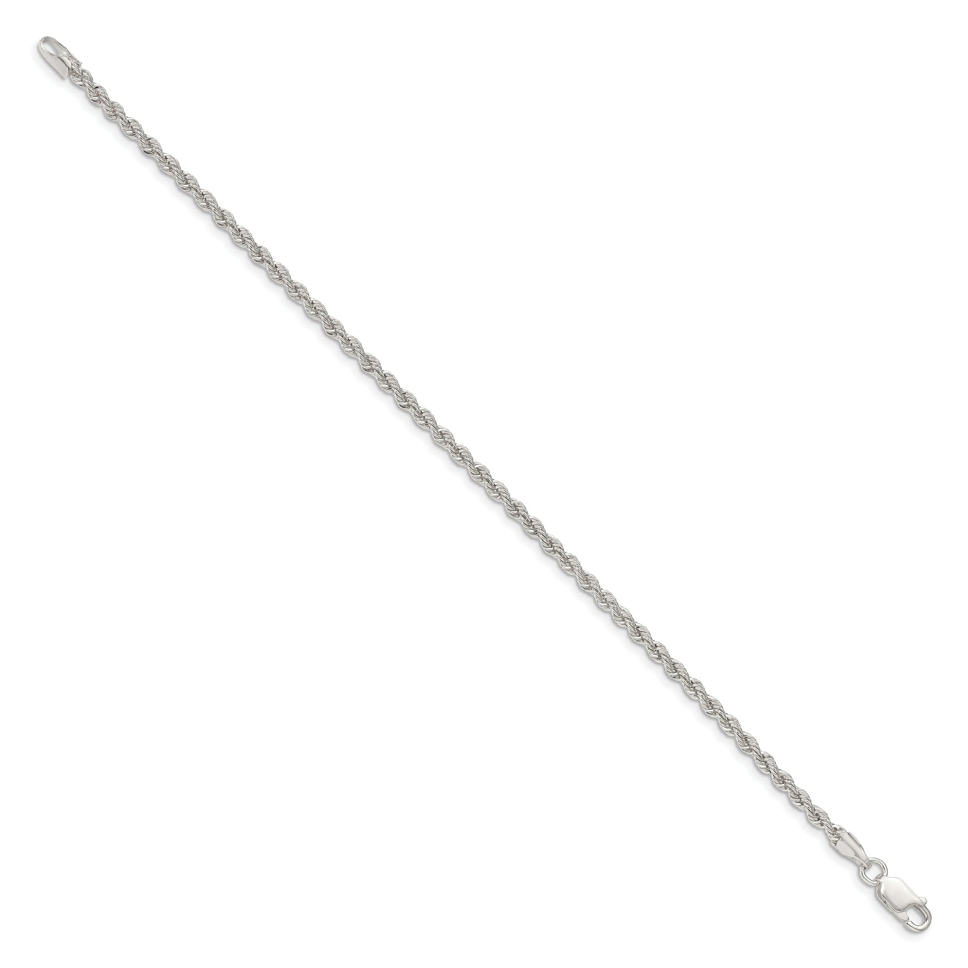 Step up your style game with the 9 Inch Sterling Silver 2.5mm Solid Rope Chain. Crafted with genuine 925 sterling silver, this anklet shines with its polished finish. The rope design offers a timeless appeal and guarantees durability. The 2.5mm width adds a touch of elegance, while the 9-inch length ensures a comfortable fit. A lobster clasp secures it effortlessly, making it perfect for daily wear. The anti-tarnish coating keeps it looking pristine. This sterling silver anklet is ideal for the modern woman who loves classic beauty with a twist.