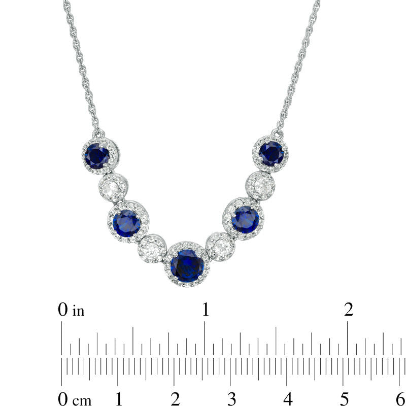 Alternating Lab-Created Blue and White Sapphire Frame Necklace in Sterling Silver