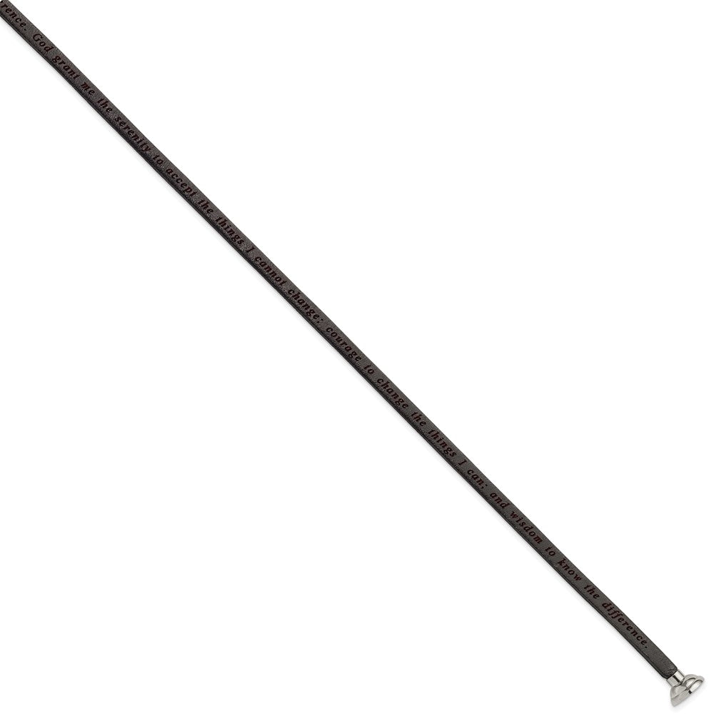 The AMEN Stainless Steel Serenity Prayer Black Leather Wrap Bracelet offers bold style with heartfelt design. This 23.5-inch accessory combines polished stainless steel with a sleek black leather wrap, creating a striking contrast that commands attention. Its 5 mm width adds a distinct flair, while the magnetic clasp ensures a secure fit with ease. Ideal for both men and women, this bracelet is adjustable and versatile, making it a perfect piece for any wardrobe. Presented in a gift box, the AMEN Stainless Steel Serenity Prayer Black Leather Wrap Bracelet is ready to inspire and impress every day.