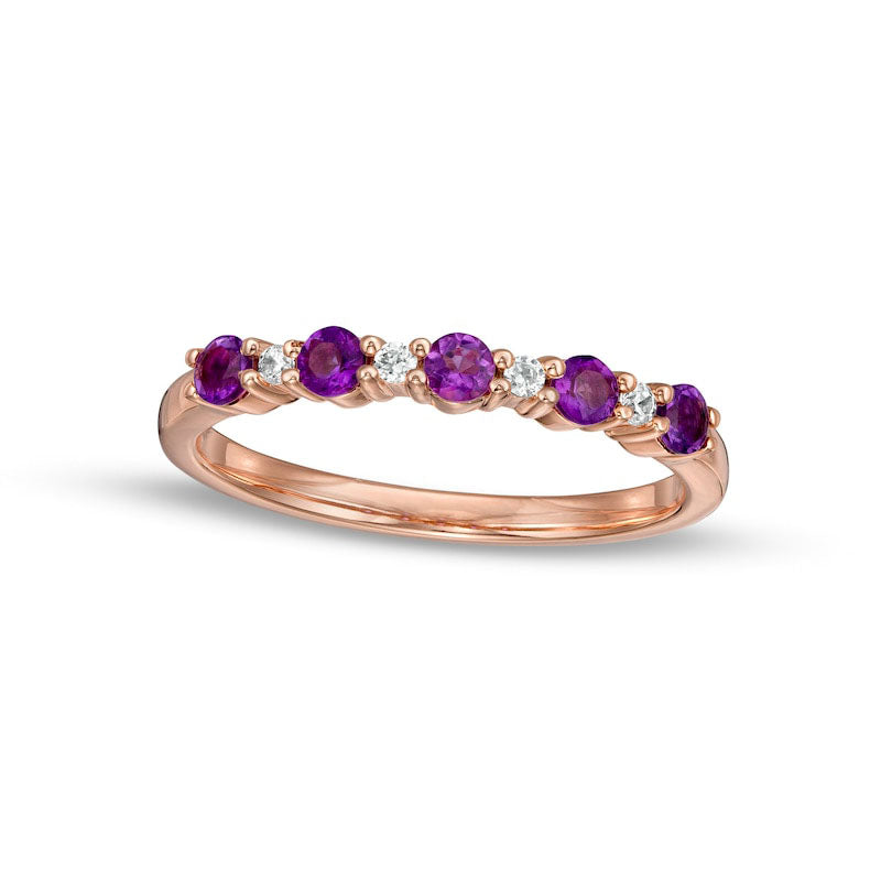 Amethyst and 0.05 CT. T.W. Natural Diamond Alternating Five Stone Stackable Ring in Solid 14K Rose Gold