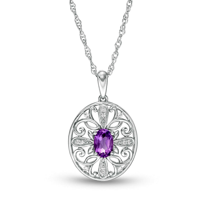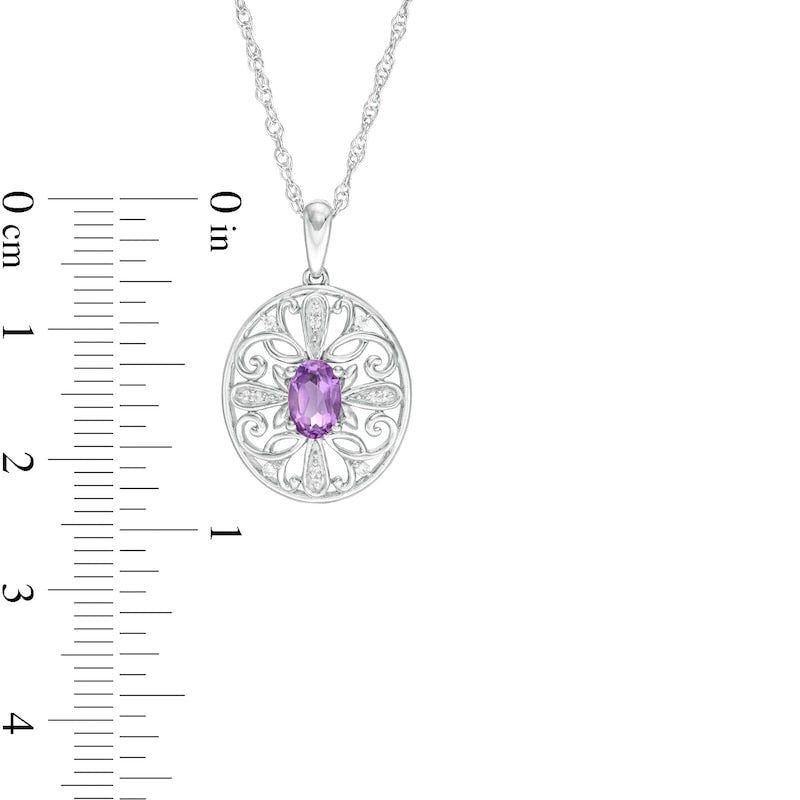 Amethyst and 0.05 CT. T.W. Natural Diamond Filigree Cross Oval Pendant in Sterling Silver