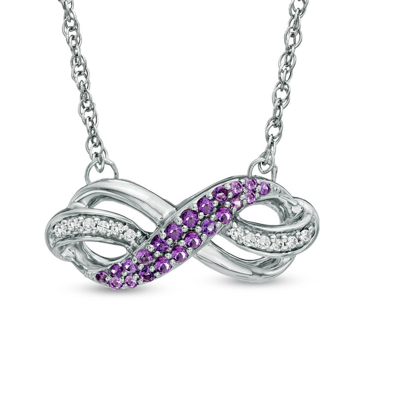 Amethyst and 0.05 CT. T.W. Natural Diamond Infinity Loop Necklace in Sterling Silver