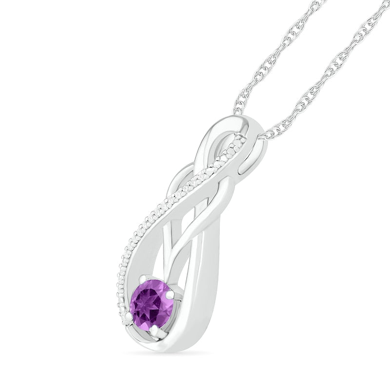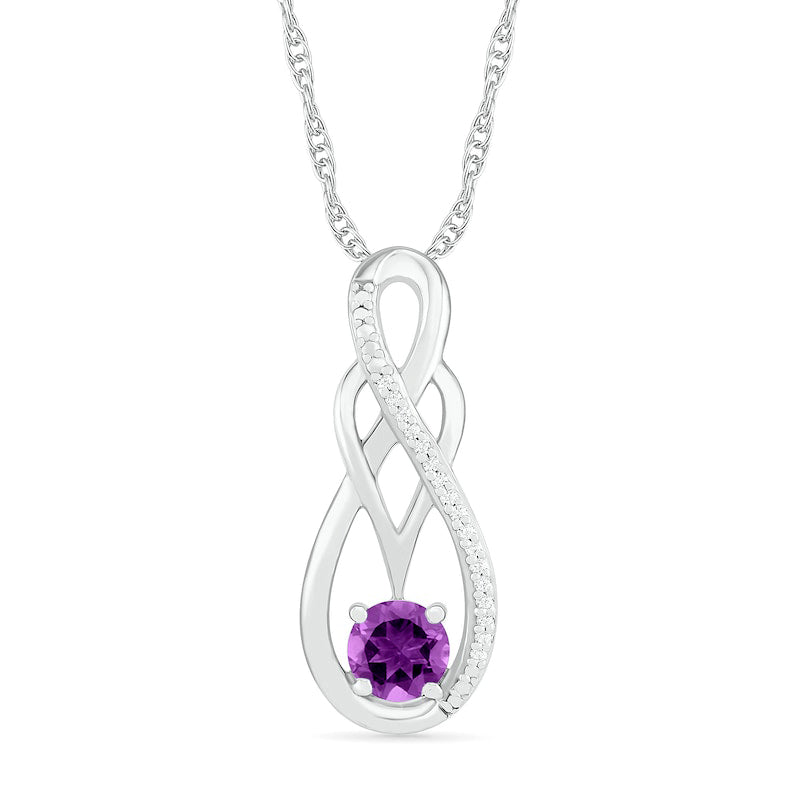 Amethyst and 0.05 CT. T.W. Natural Diamond Overlay Infinity Pendant in Sterling Silver