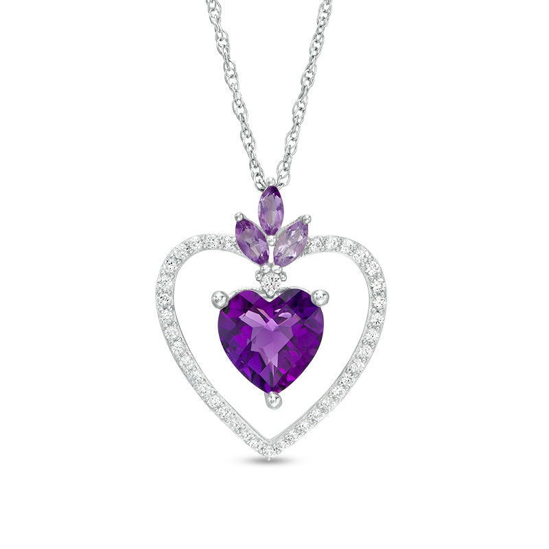 Amethyst and Lab-Created White Sapphire Heart Pendant in Sterling Silver