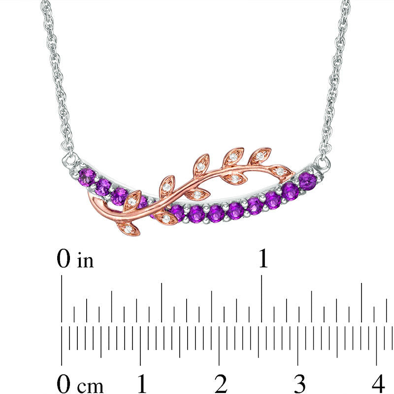 Amethyst and Lab-Created White Sapphire Vine Overlay Curved Bar Necklace in Sterling Silver and 10K Rose Gold