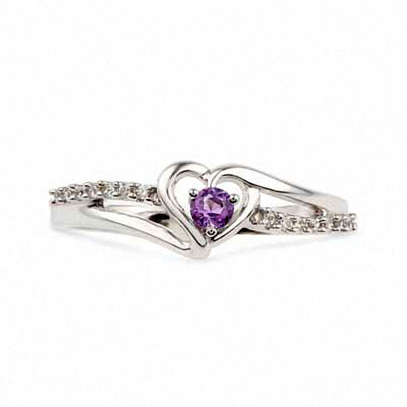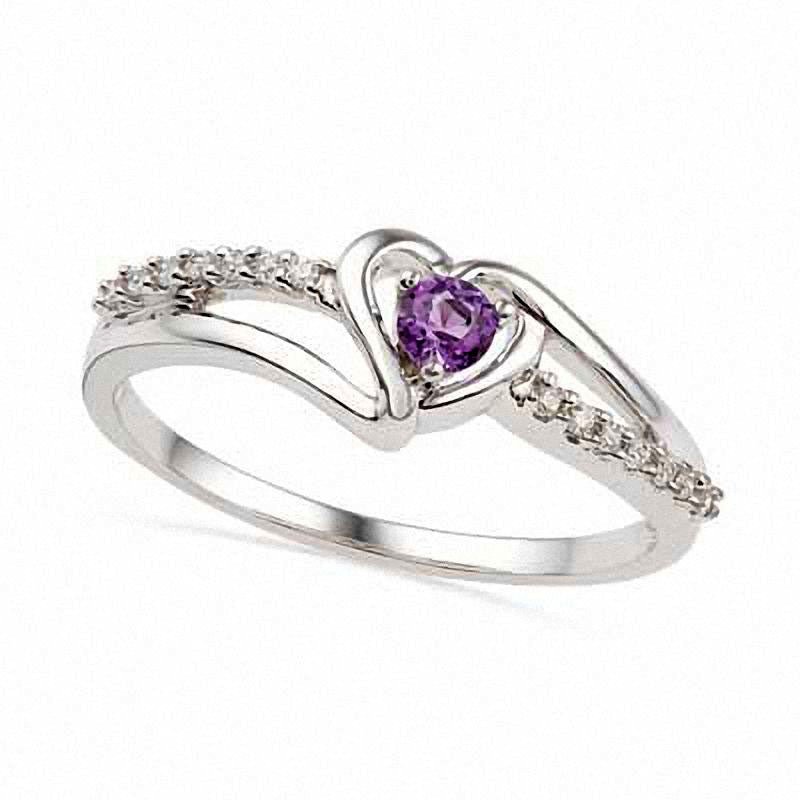 Amethyst and Natural Diamond Accent Heart Promise Ring in Sterling Silver