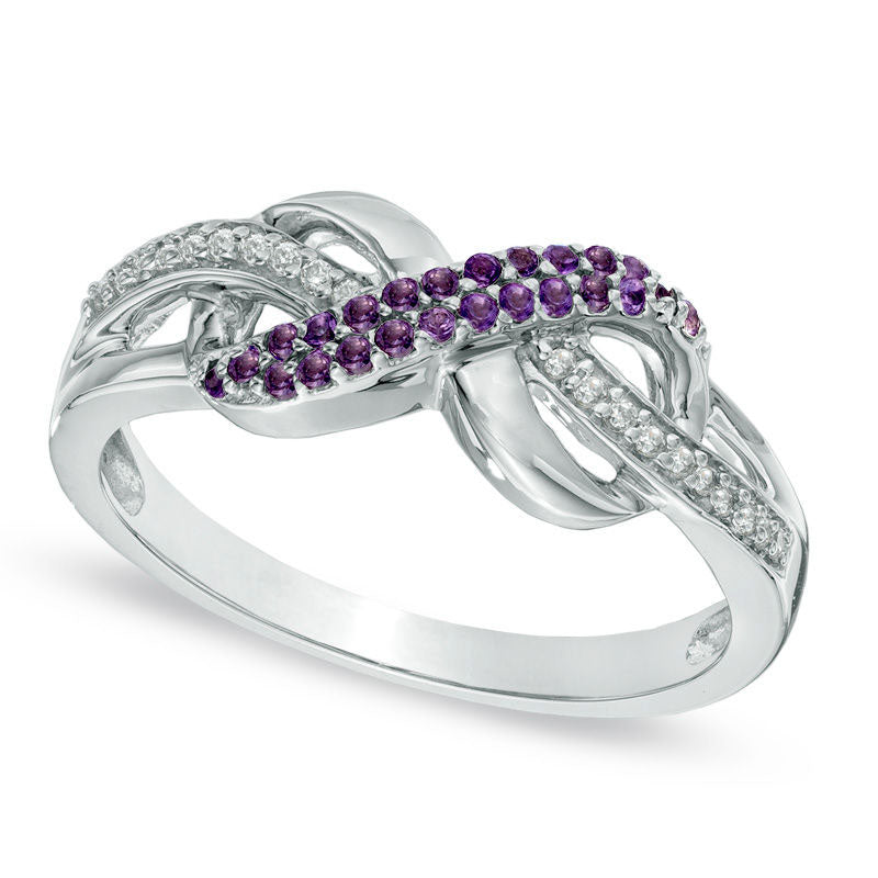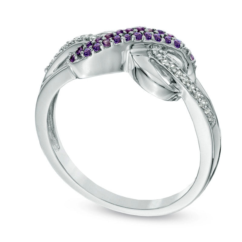 Amethyst and Natural Diamond Accent Infinity Loop Ring in Sterling Silver