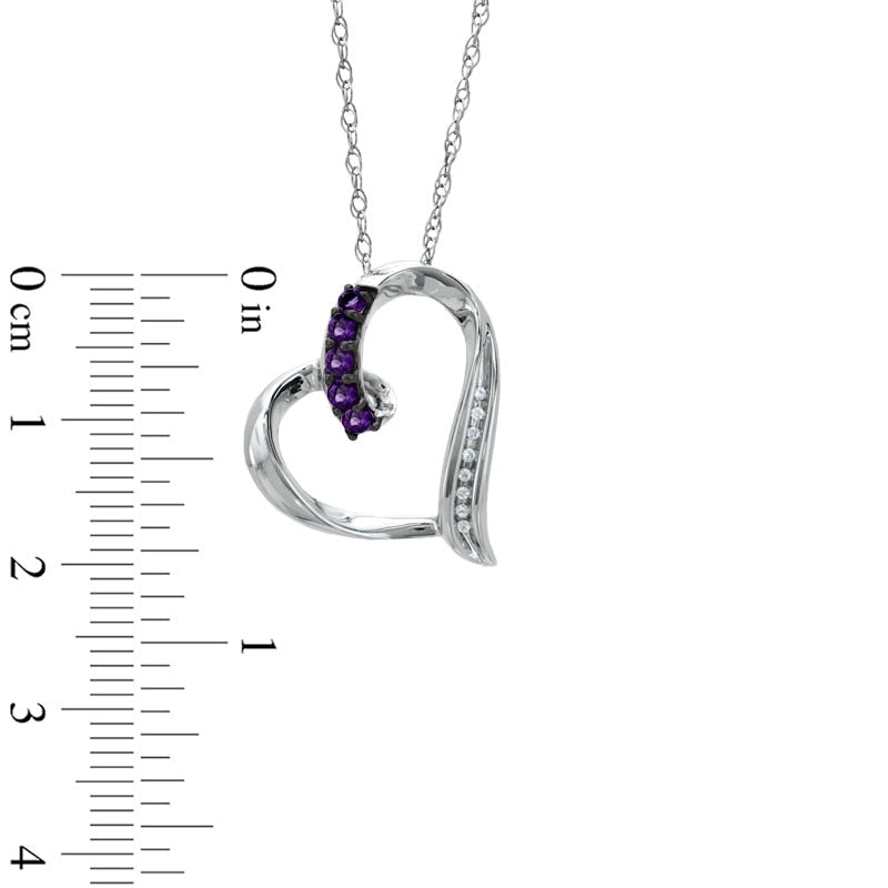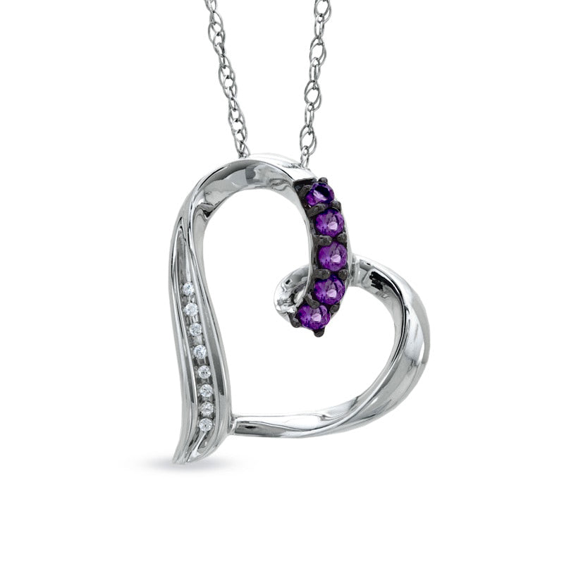 Amethyst and Natural Diamond Accent Looping Heart Pendant in Sterling Silver