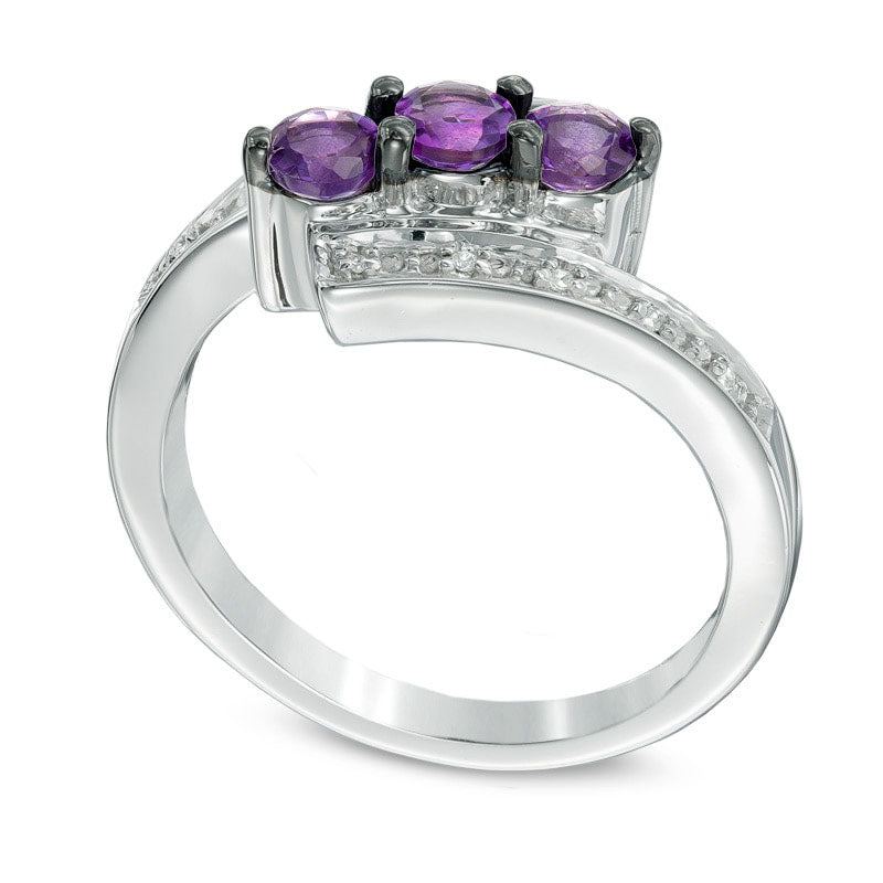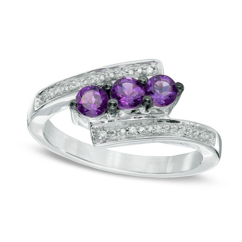 Amethyst and Natural Diamond Accent Three Stone Bypass Ring in Sterling Silver